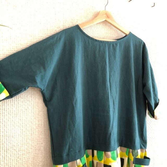 ドルマンスリーブのワンピース*ティールグリーン×キイロ