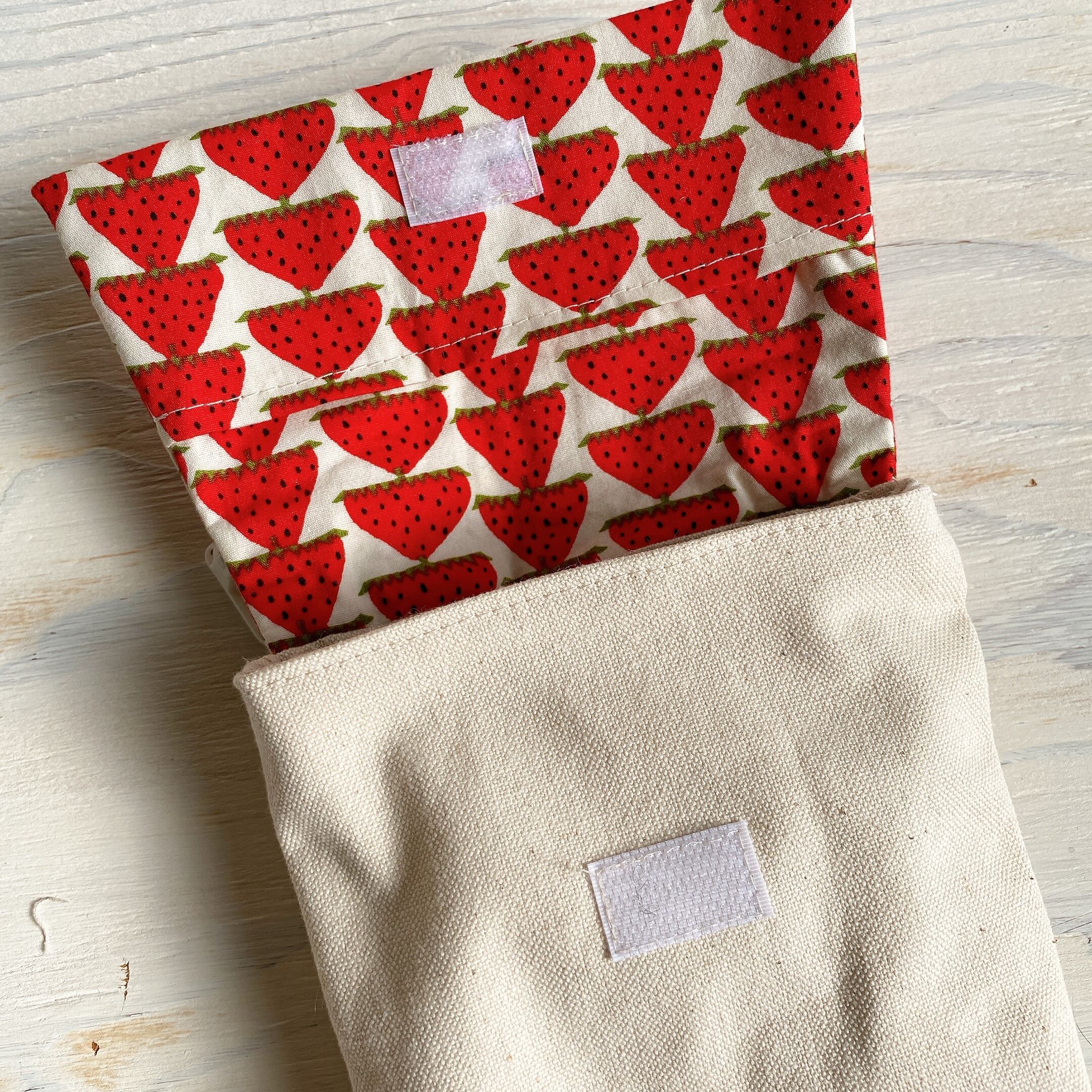 裏にはちいさいポケットを付けて絆創膏なども持ち歩けるようにしました。
