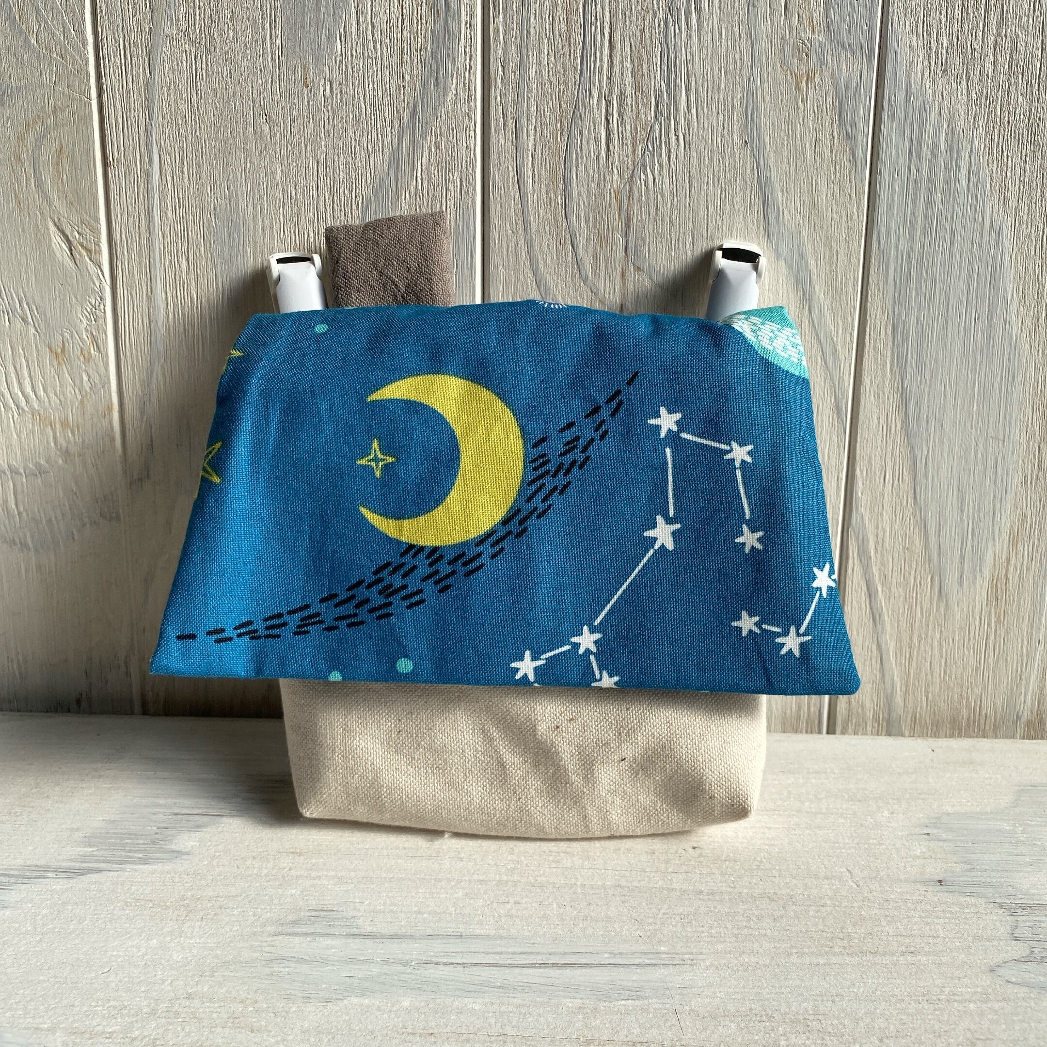 裏にはちいさいポケットを付けて絆創膏なども持ち歩けるようにしました。