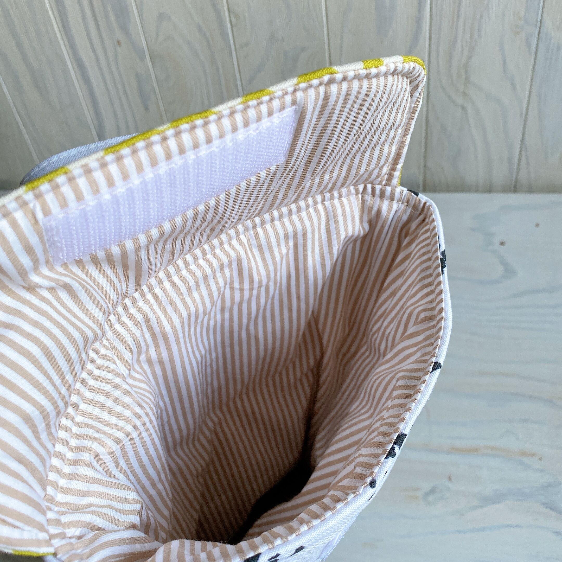 裏面には大きなポケットを付けましたのでプリント類など入れることができます