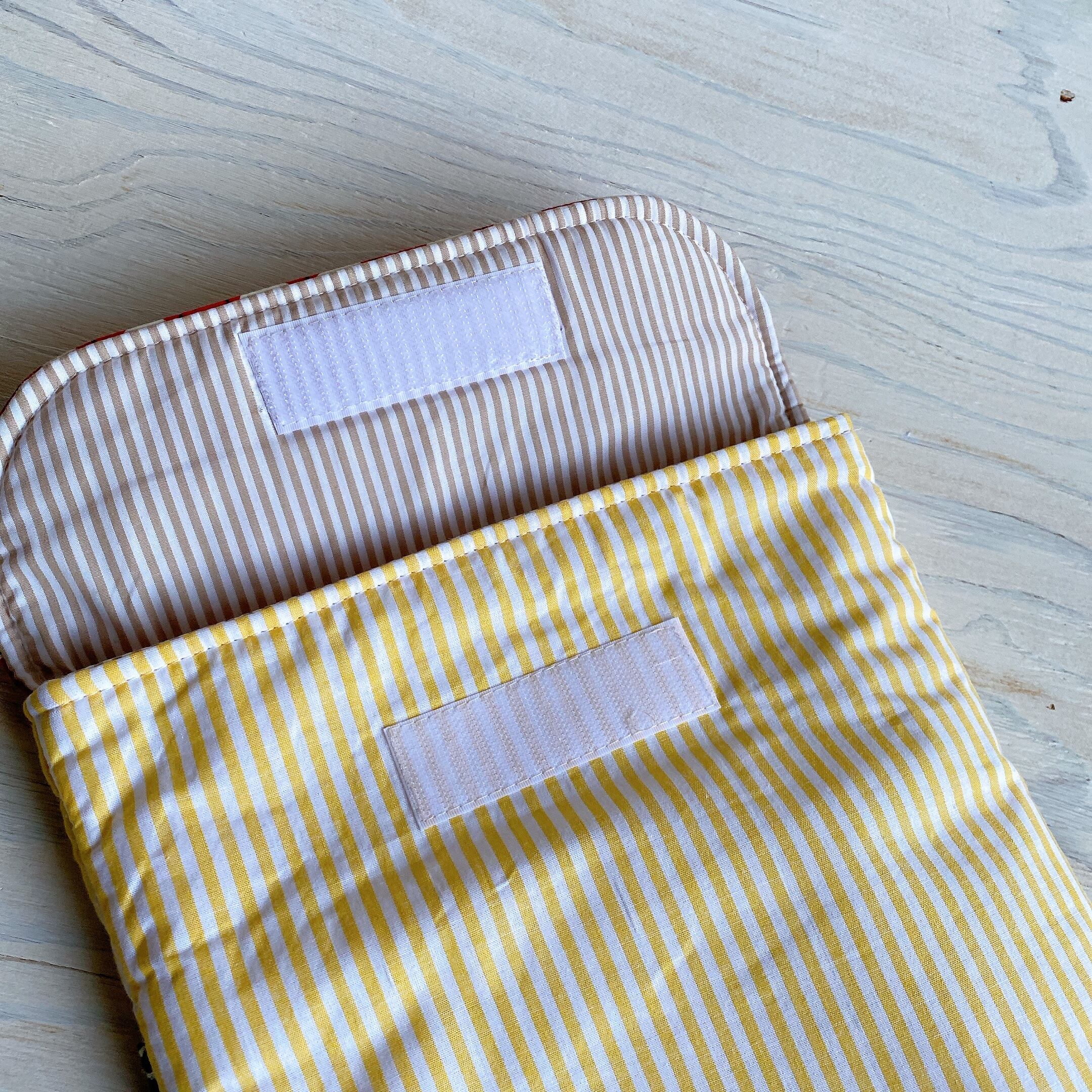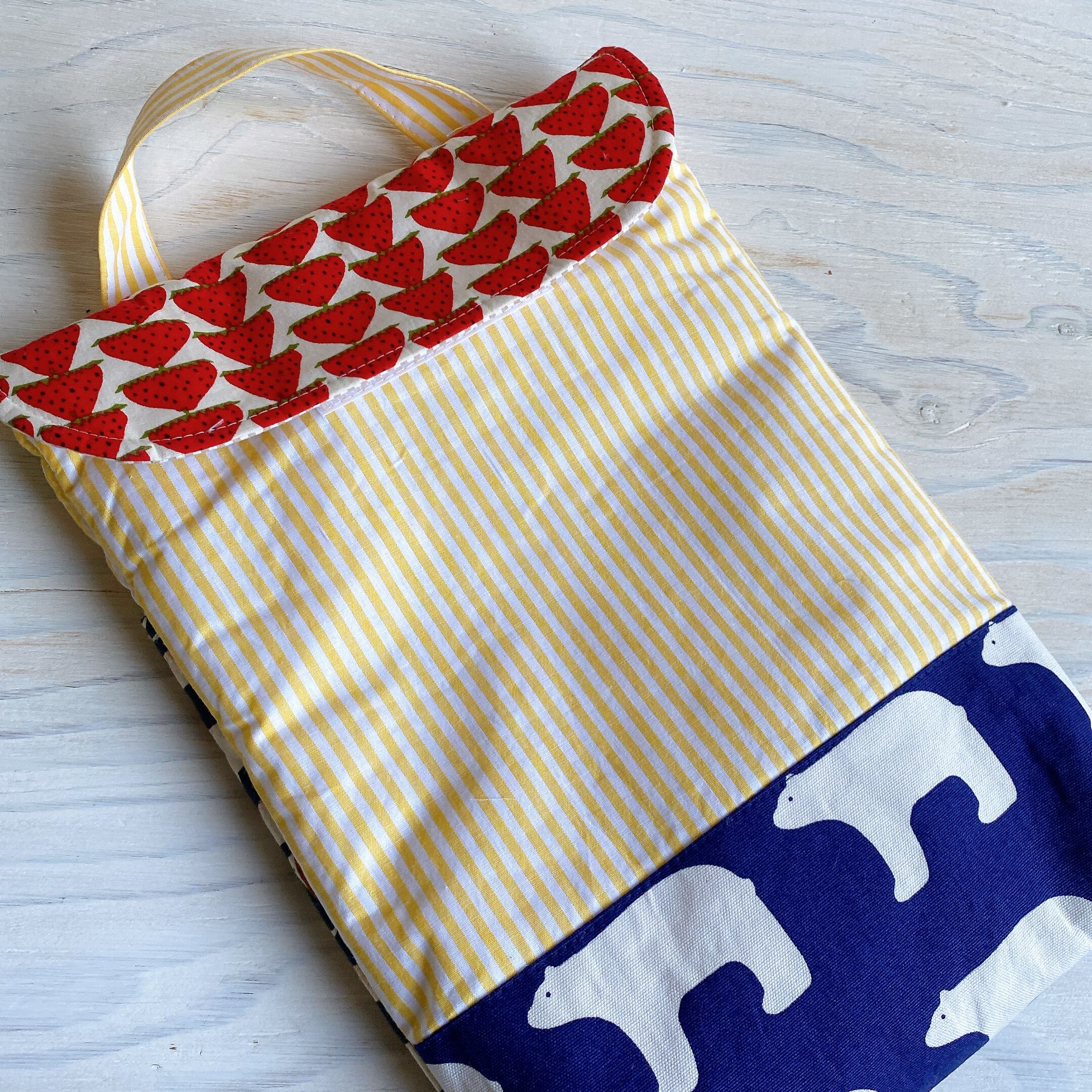 裏面には大きなポケットを付けましたのでプリント類など入れることができます