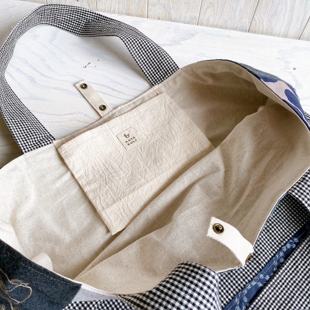綿麻キャンバスの裏地がついていて、内ポケットがあります。