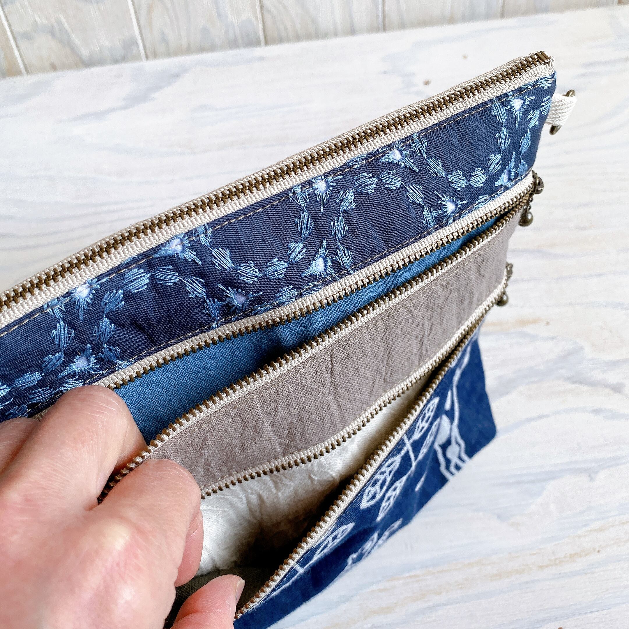 相性の良い生地を組み合わせてポシェットにもなるポーチを作りました。