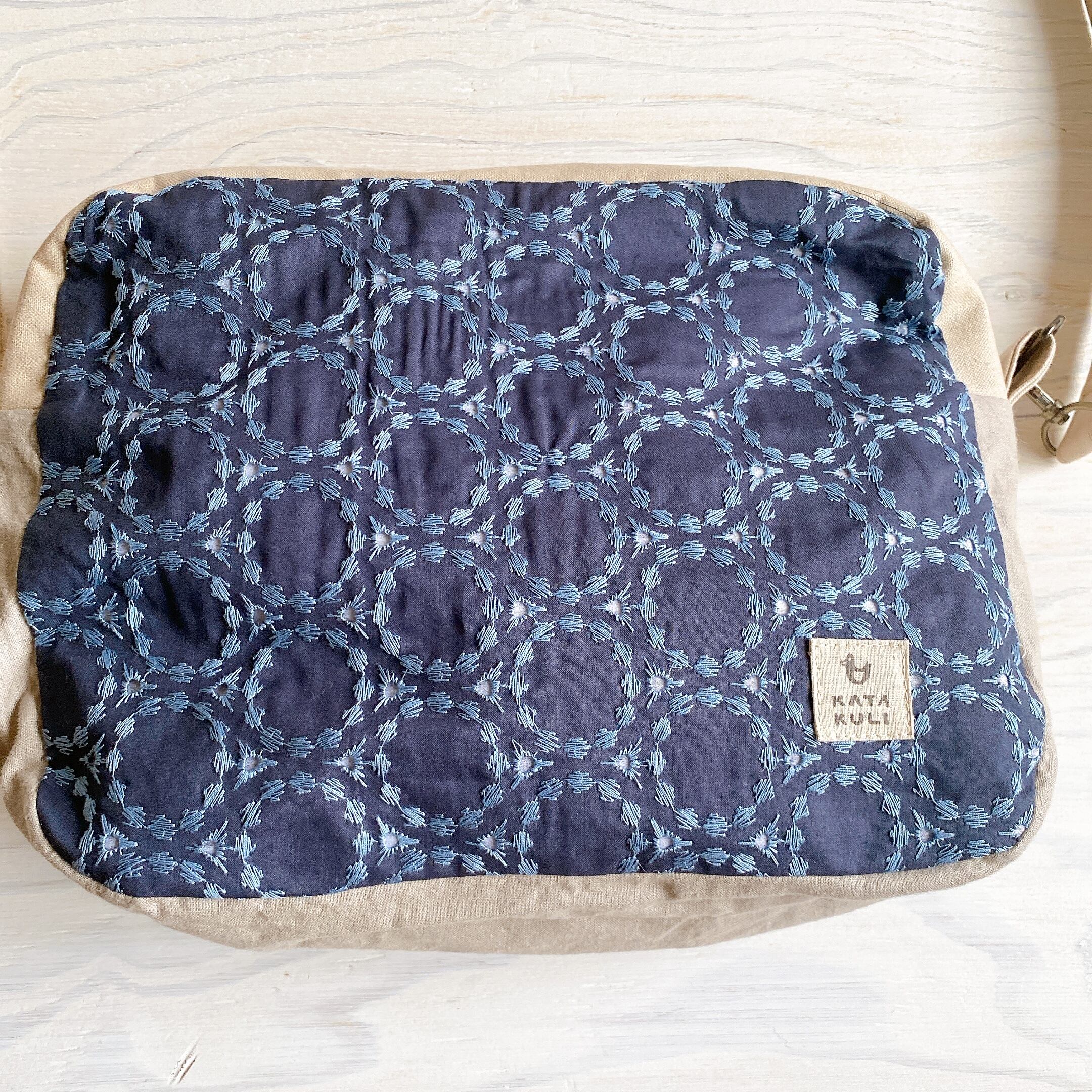 裏地は綿麻キャンバス、マチの部分はハンプの生地を使っていますのでハリがあります
