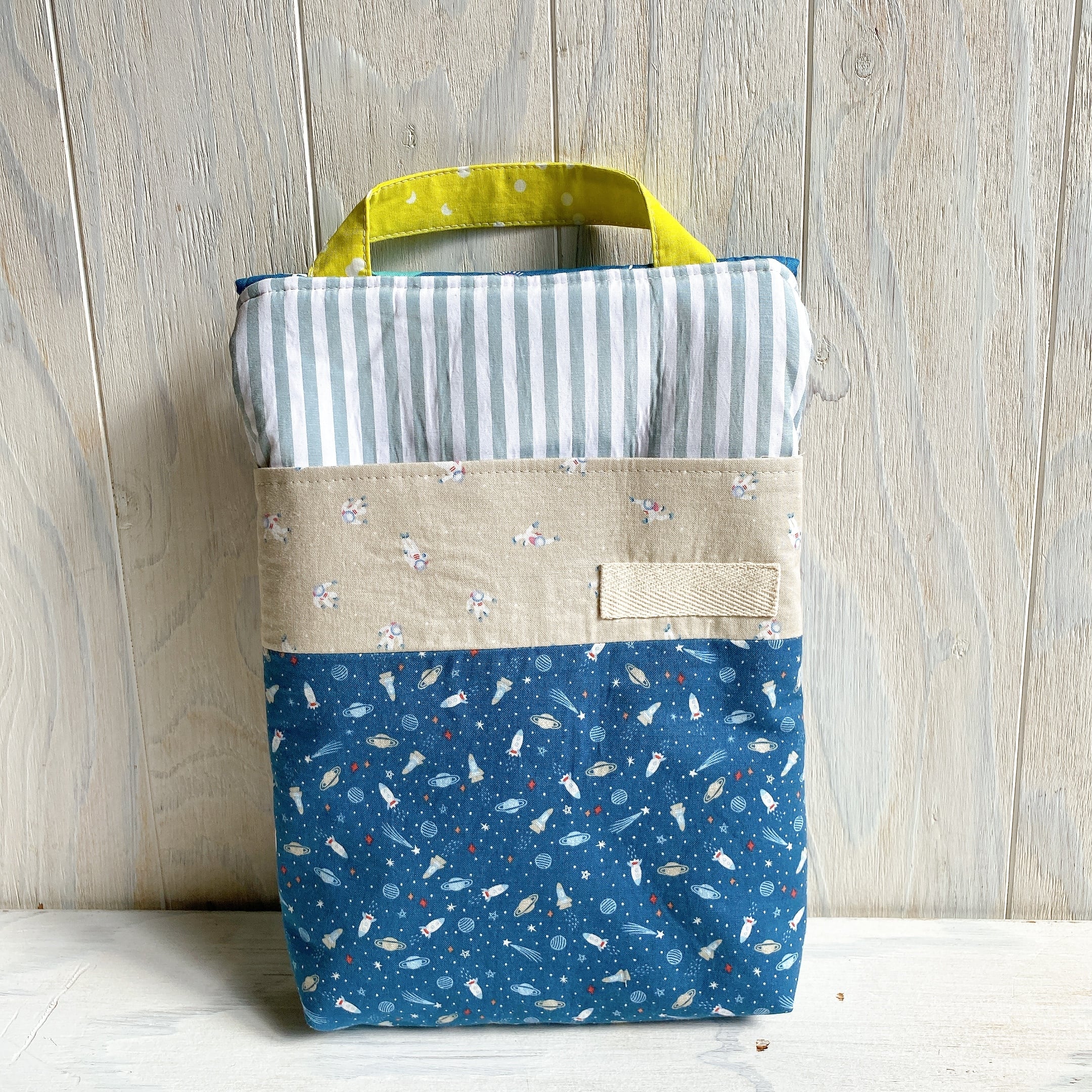 裏面には大きなポケットを付けましたのでプリント類など入れることができます