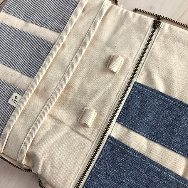 ケースがパカっと全開になるように、ファスナー止まりの部分に工夫をしています。