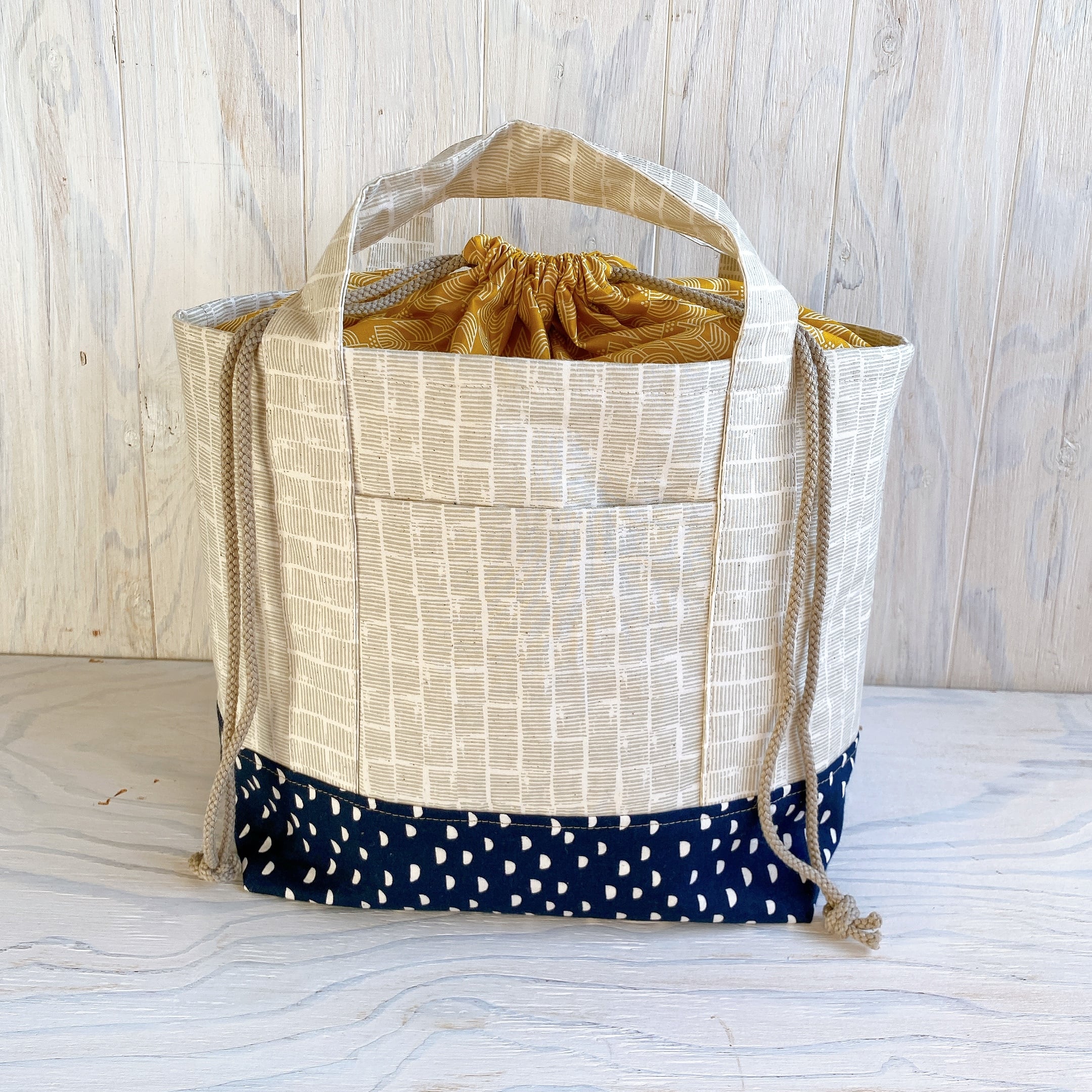 巾着付きトートバック(カラシ×ネイビー)