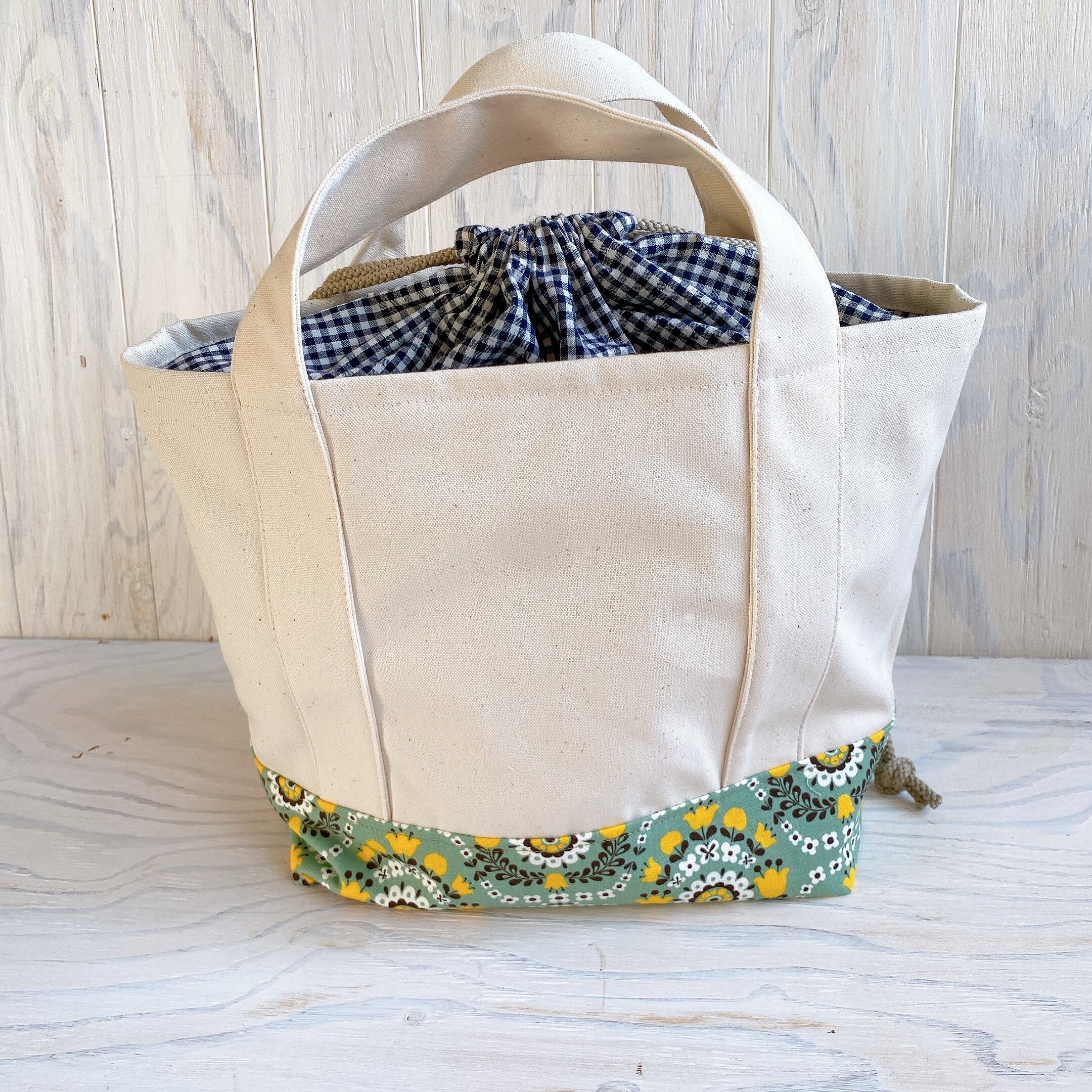 3つの生地を組み合わせて巾着付きのトートバックを作りました