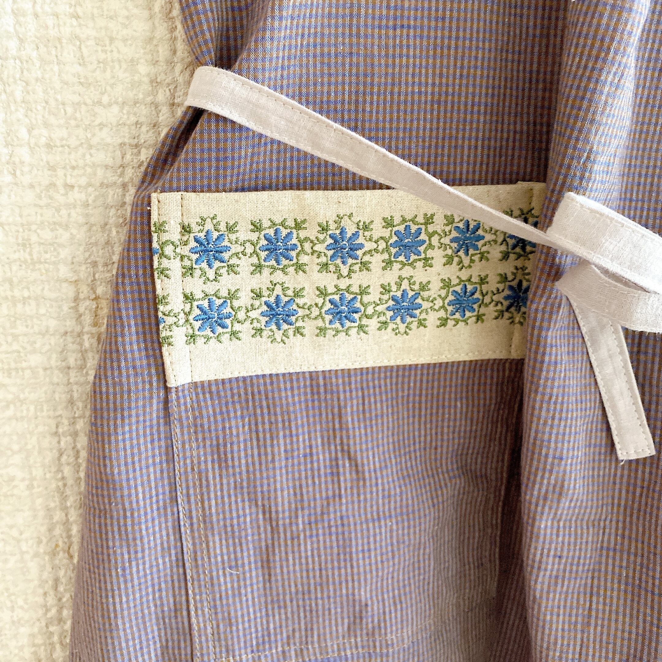 タックと刺繍のシンプルエプロン(パープルチェック)