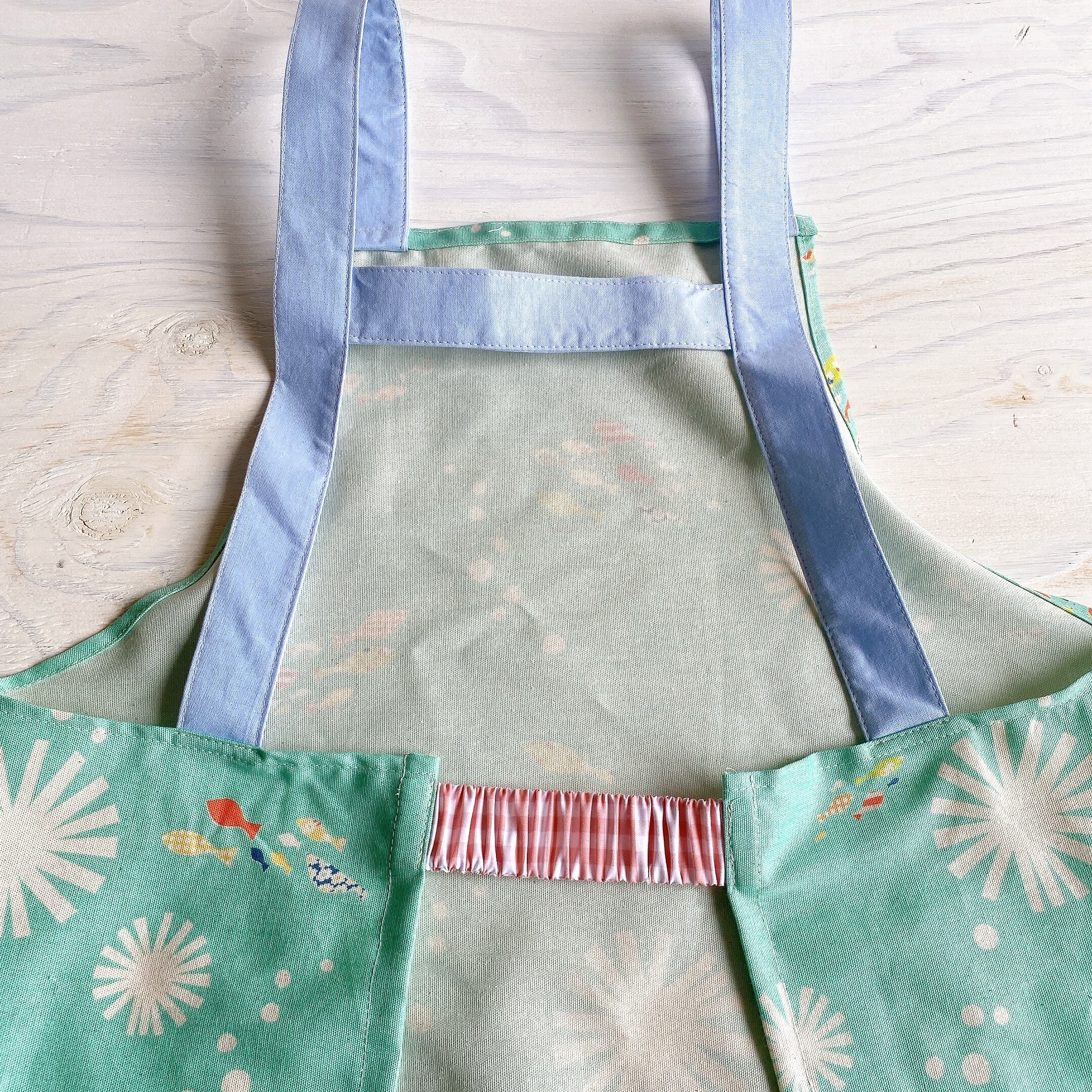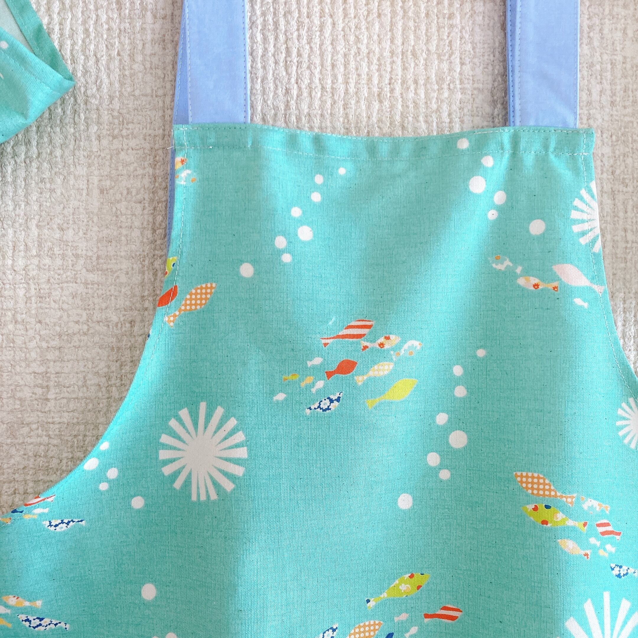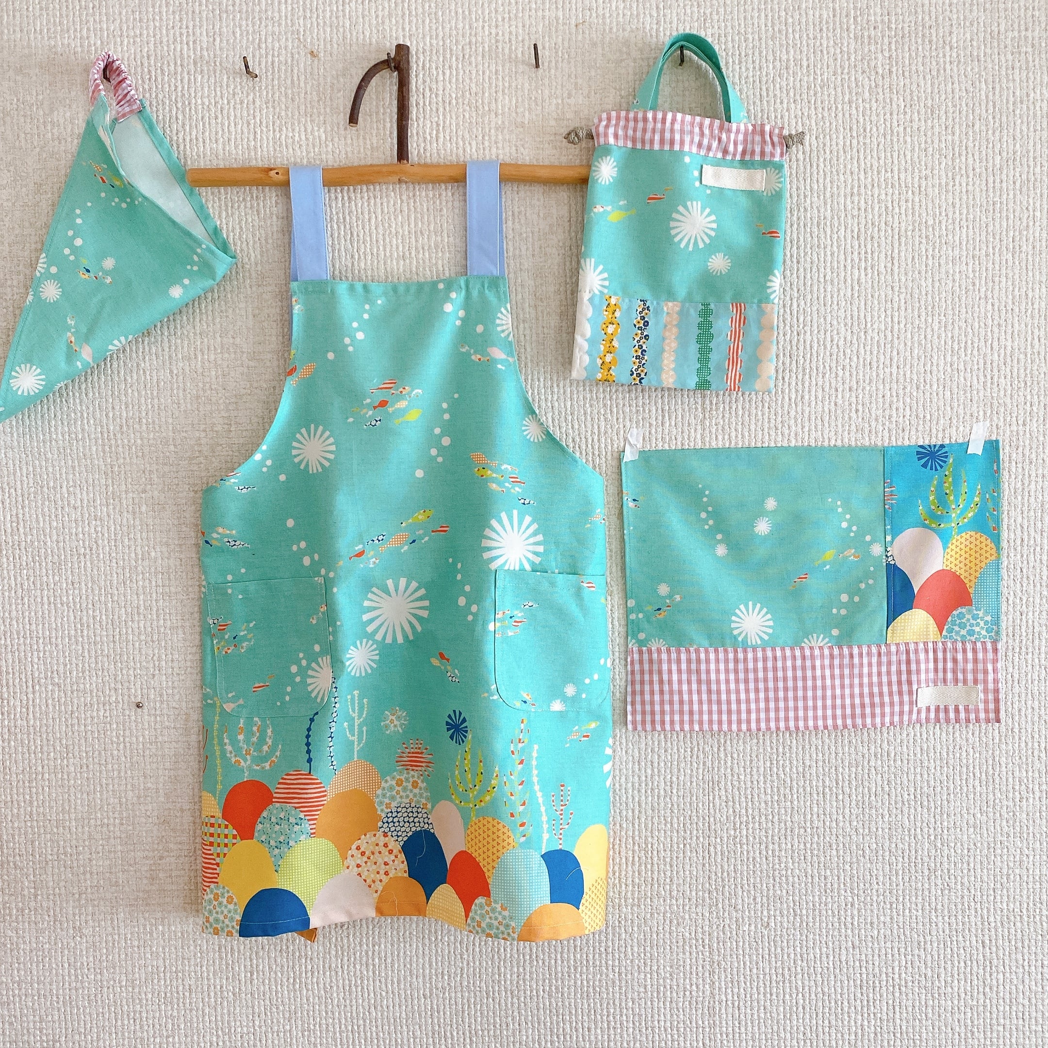 と思い、お年頃な高学年さんに気に入ってもらえそうな生地でエプロンを作りました。