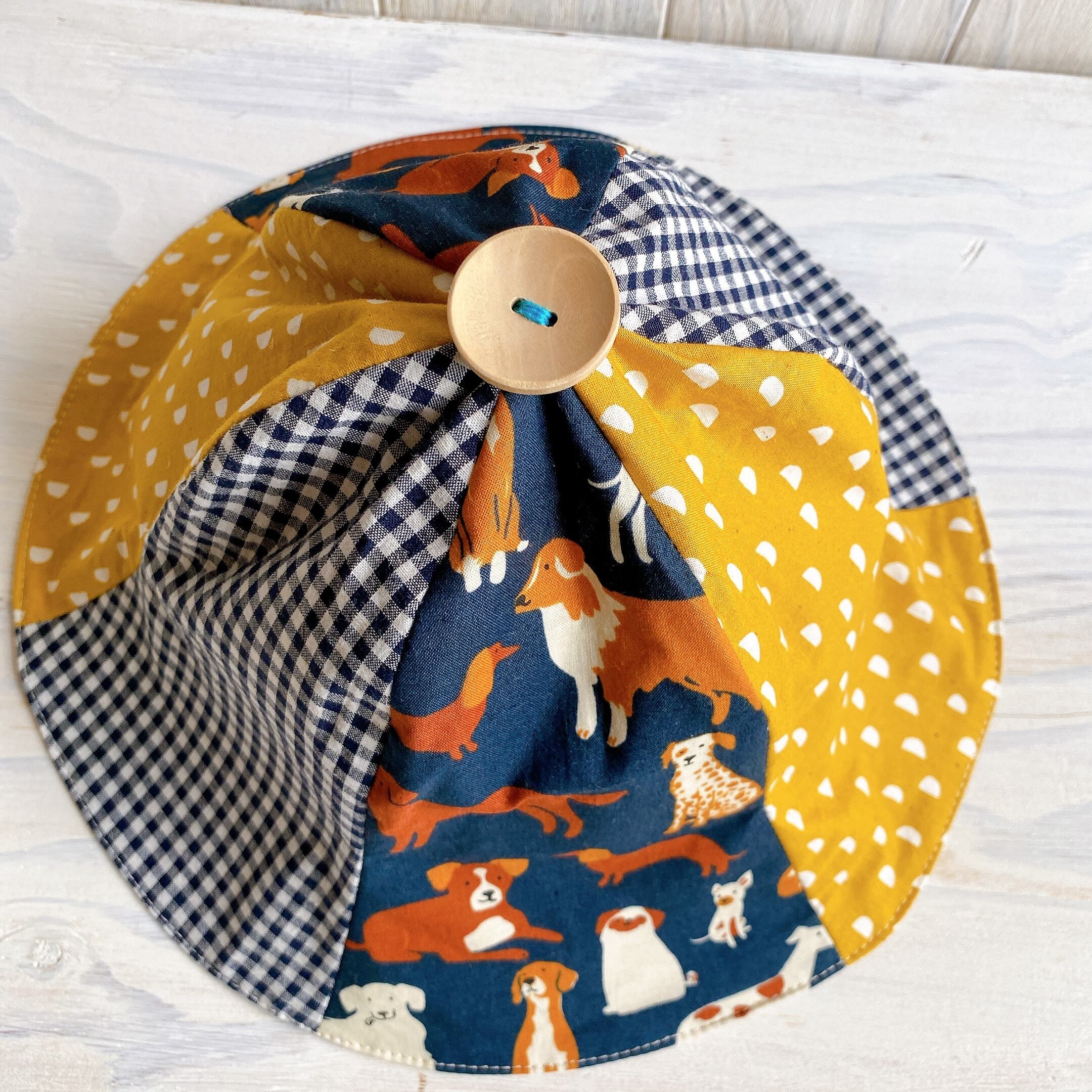 相性の良い3色の生地を組み合わせてチューリップハットにしました。