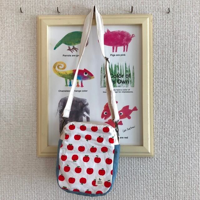 斜め掛けのショルダーバック*ポーチにもなります(えんぴつ×リンゴ)