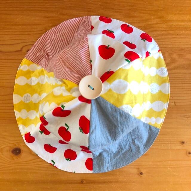 相性の良い3色の生地を組み合わせてチューリップハットにしました。
