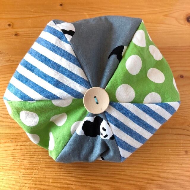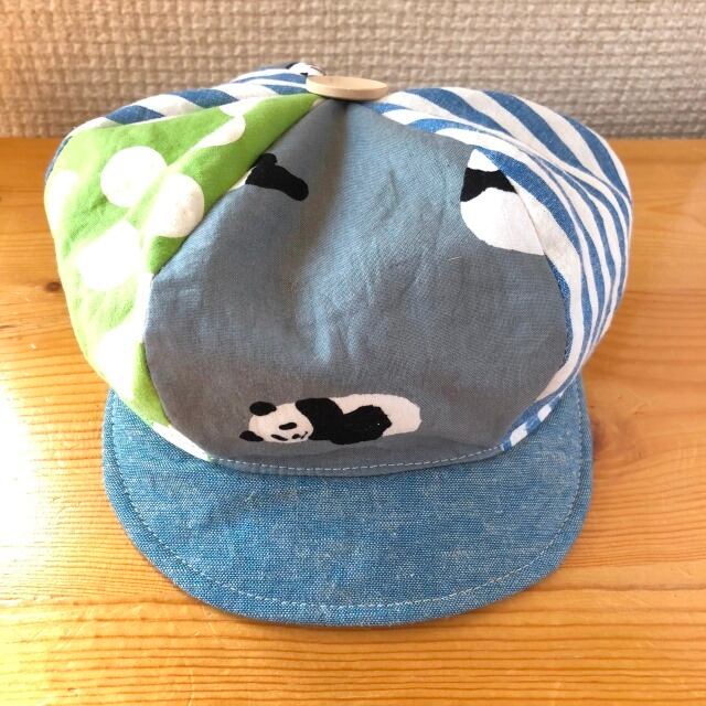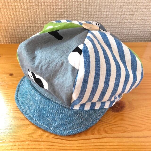 相性の良い3種類の生地を組み合わせて賑やかなキャスケットにしてみました。
