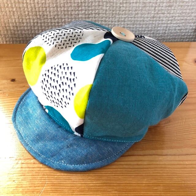 相性の良い3種類の生地を組み合わせて賑やかなキャスケットにしてみました。