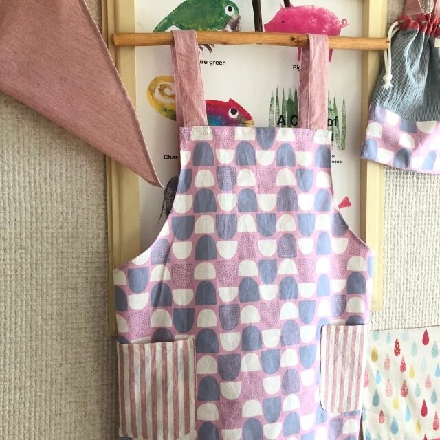 と思い、お年頃な高学年さんに気に入ってもらえそうな生地でエプロンを作りました。