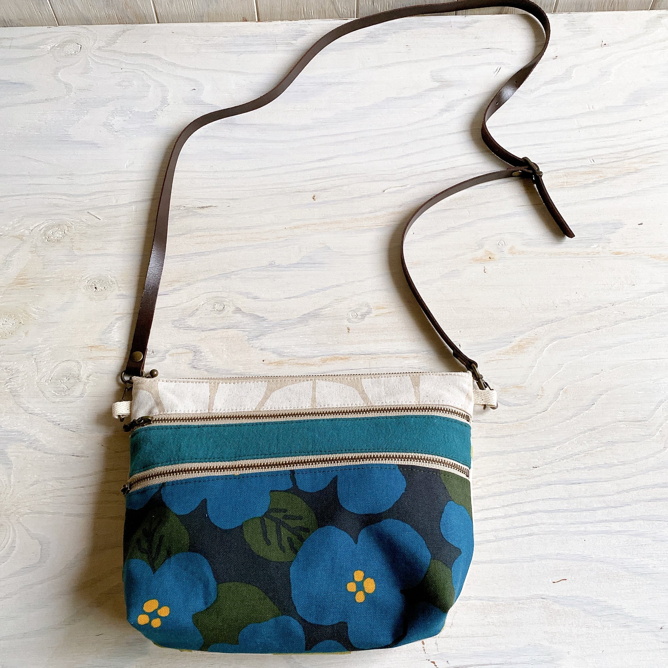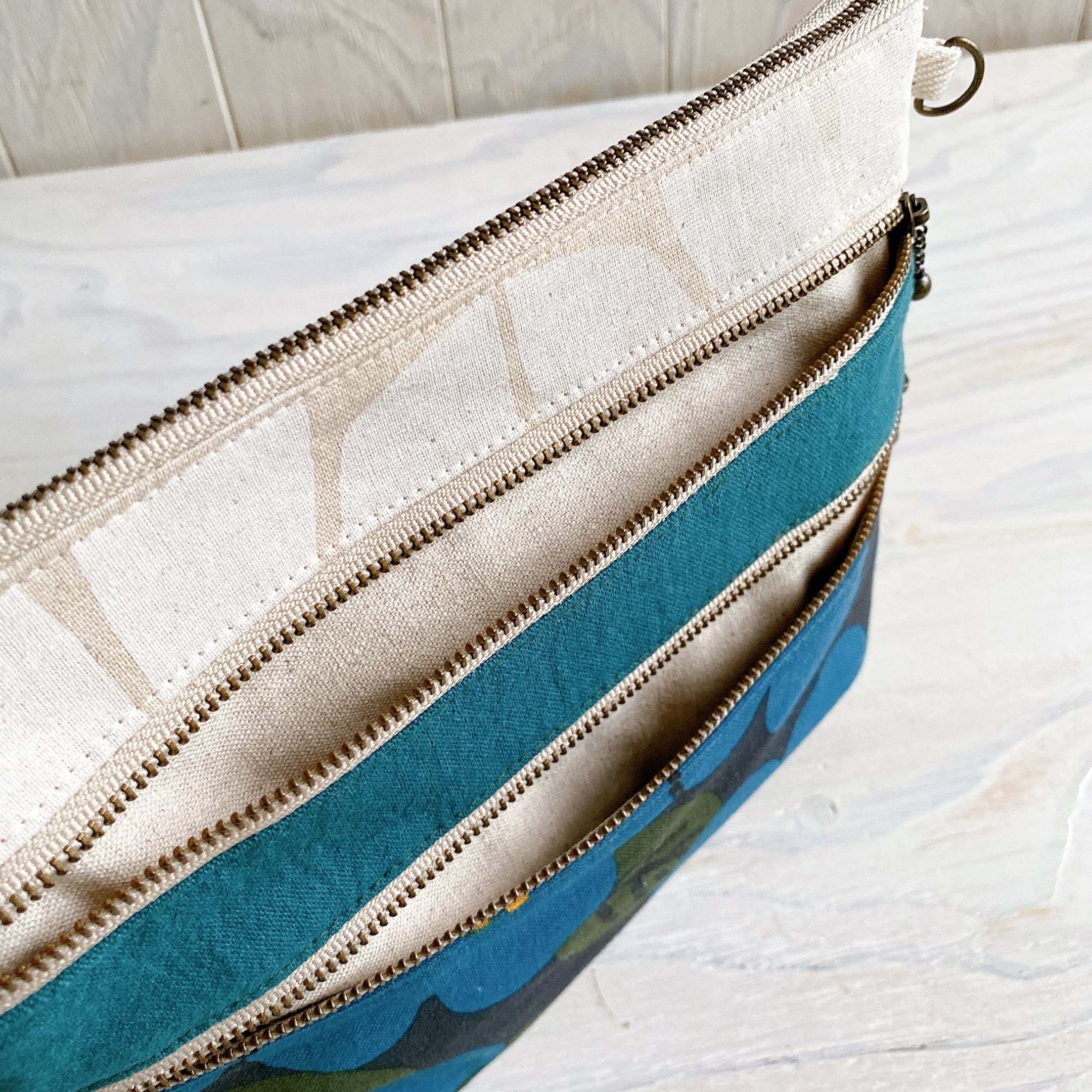 マチ付き3ファスナーポーチ・ポシェットにもなります(アオ花)