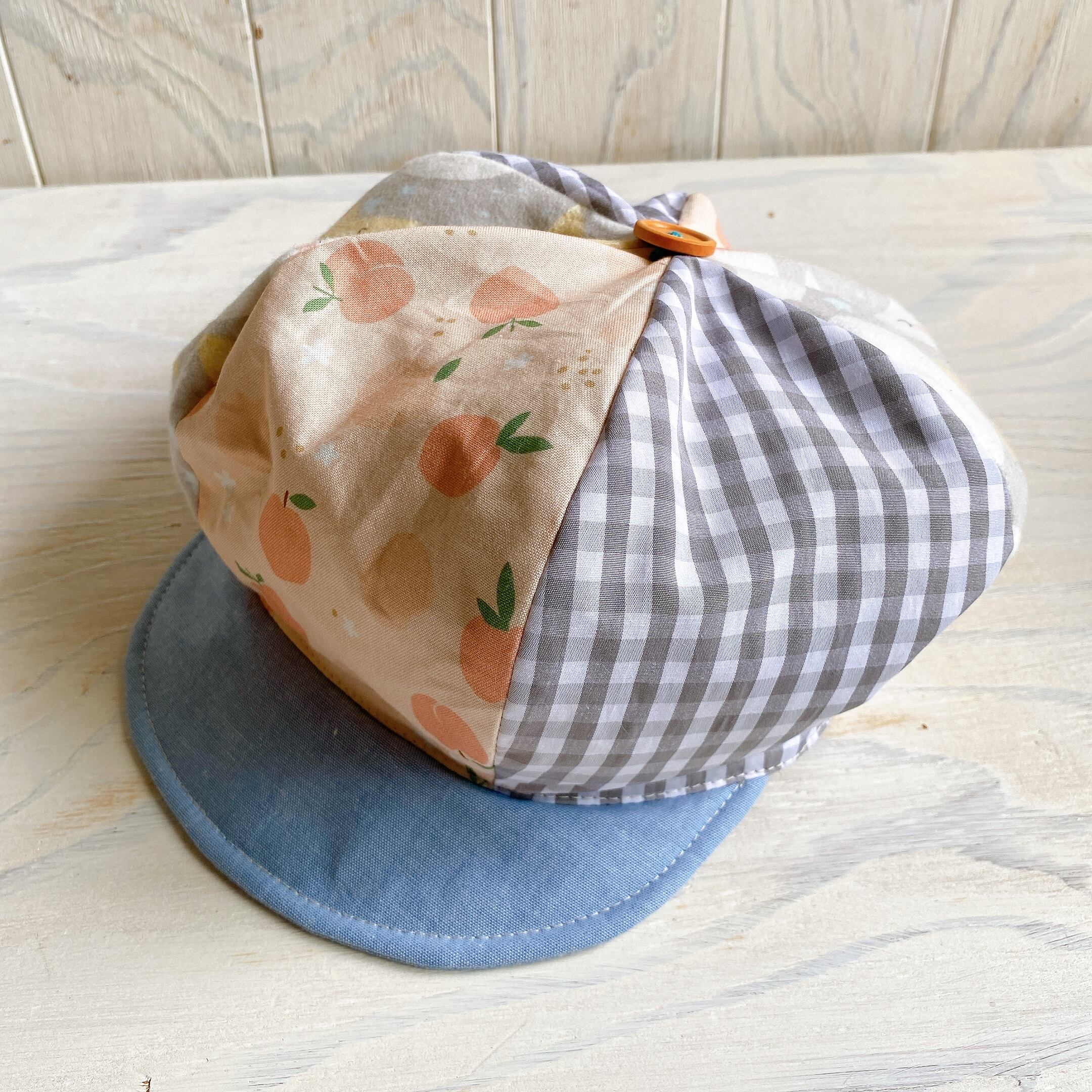 相性の良い3種類の生地を組み合わせて賑やかなキャスケットにしてみました。