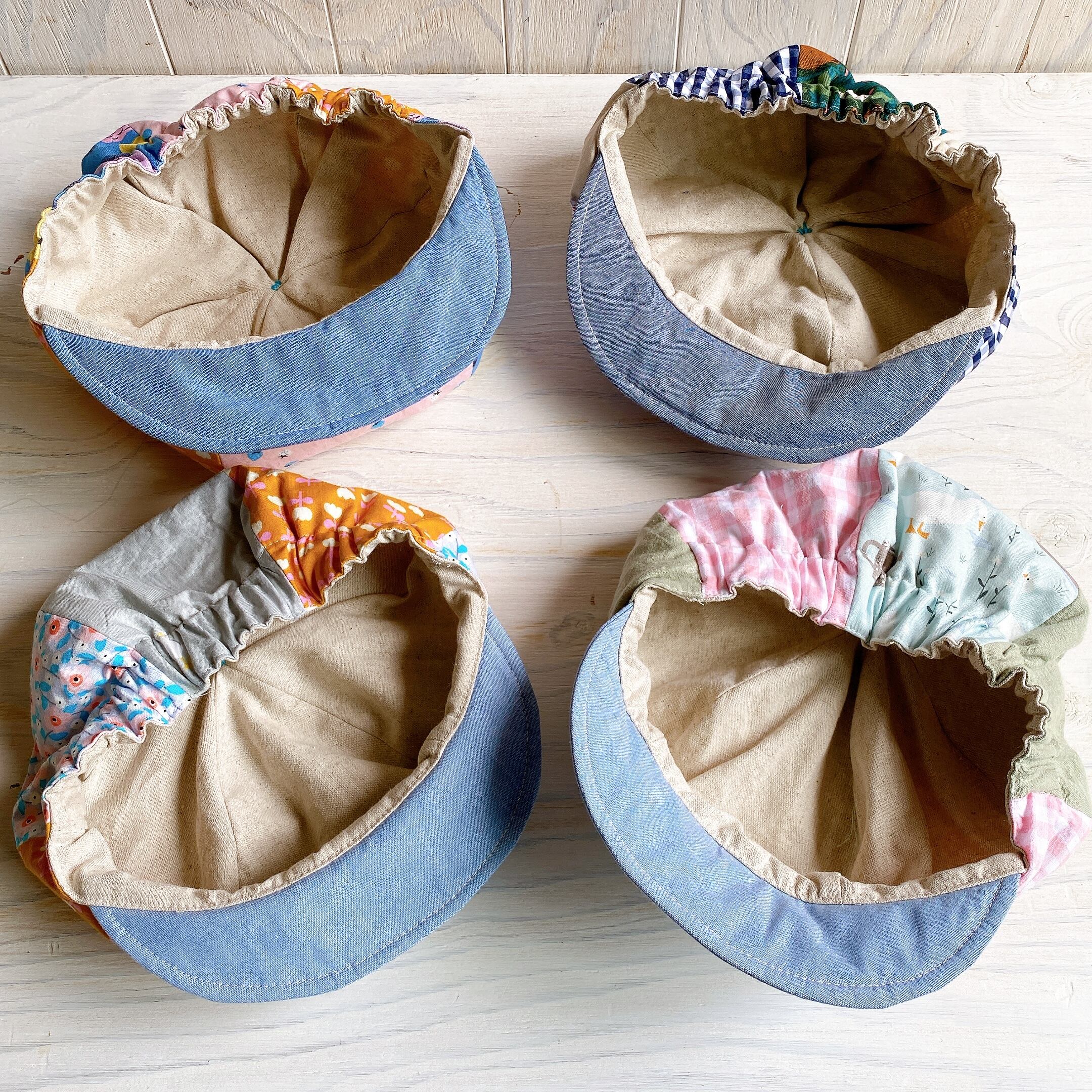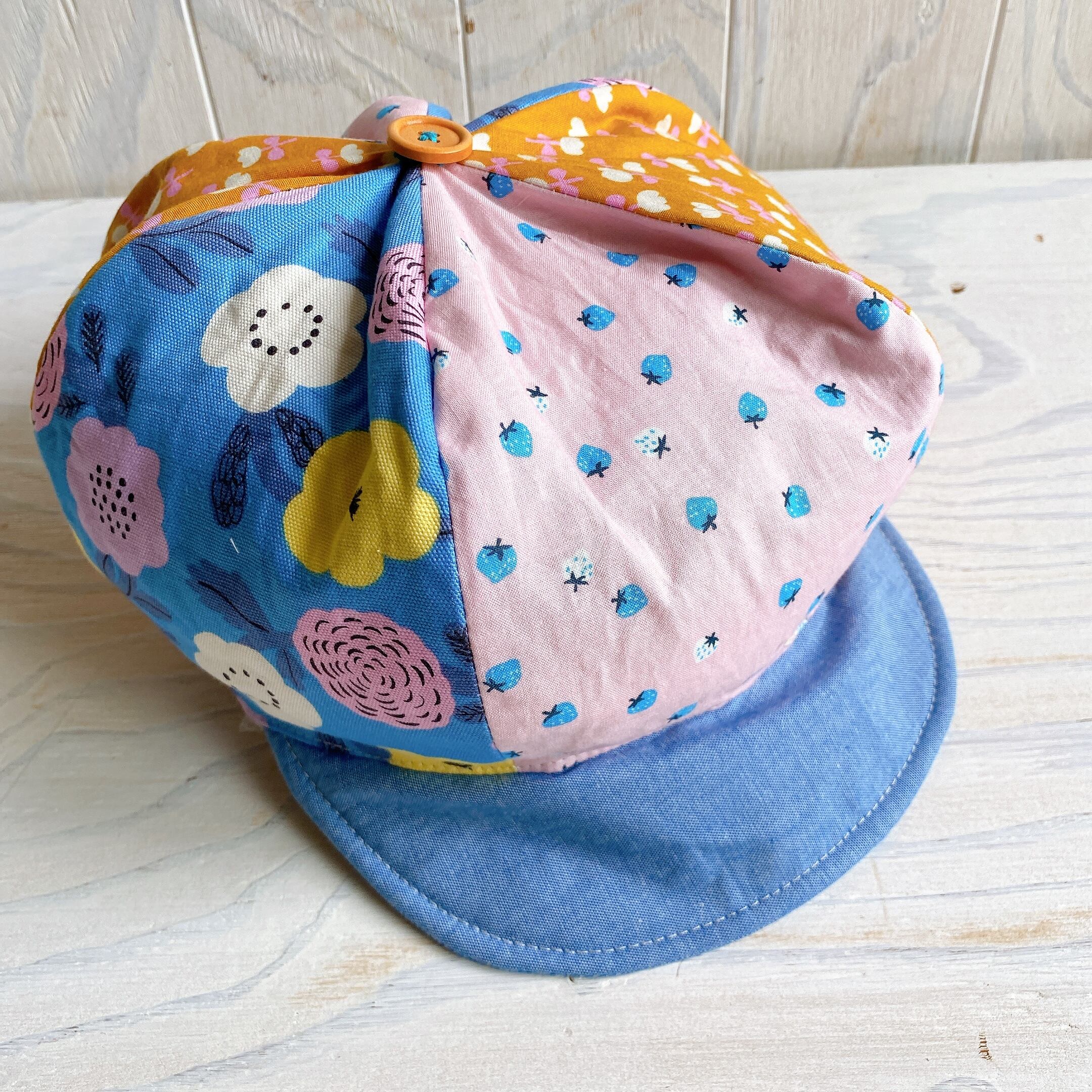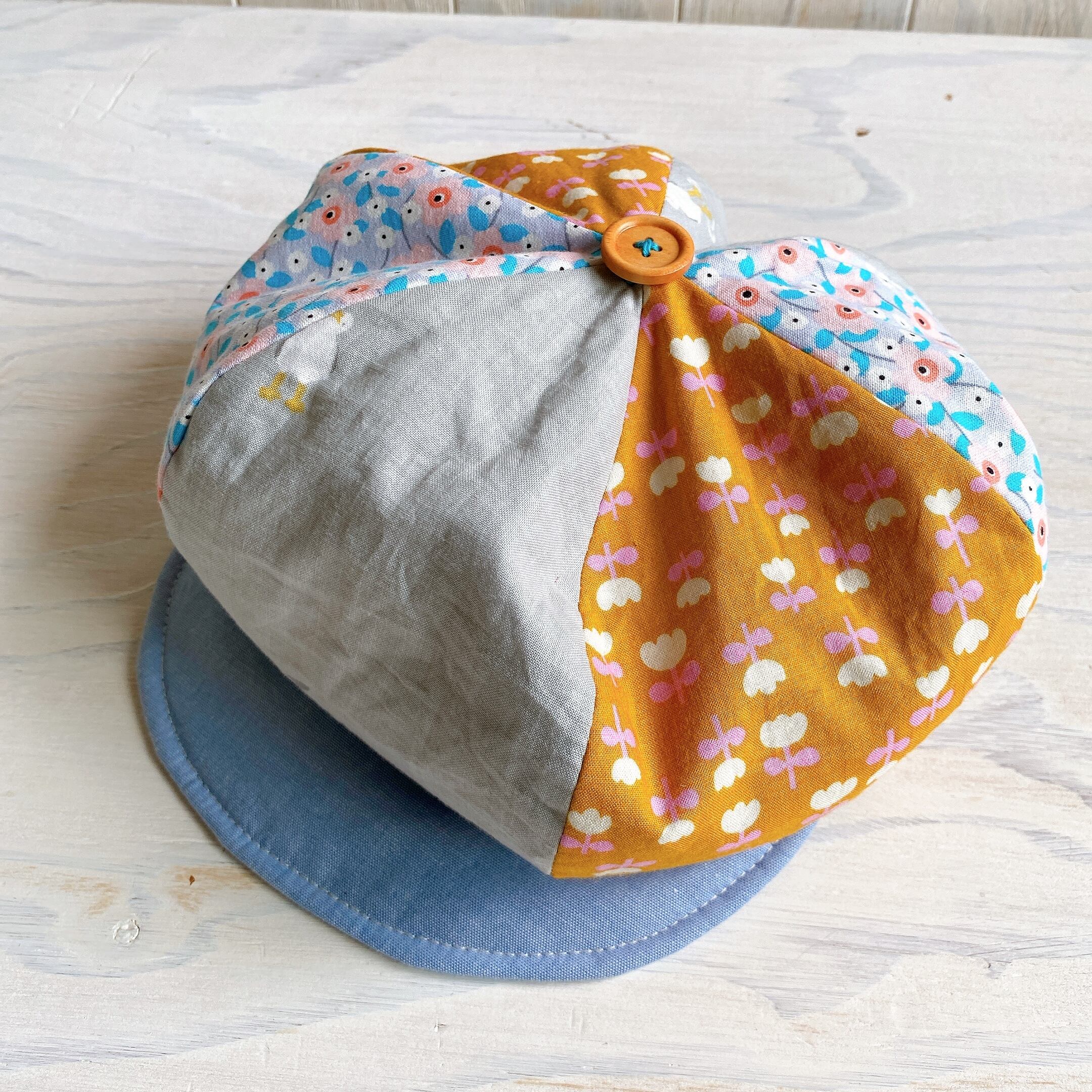 相性の良い3種類の生地を組み合わせて賑やかなキャスケットにしてみました。
