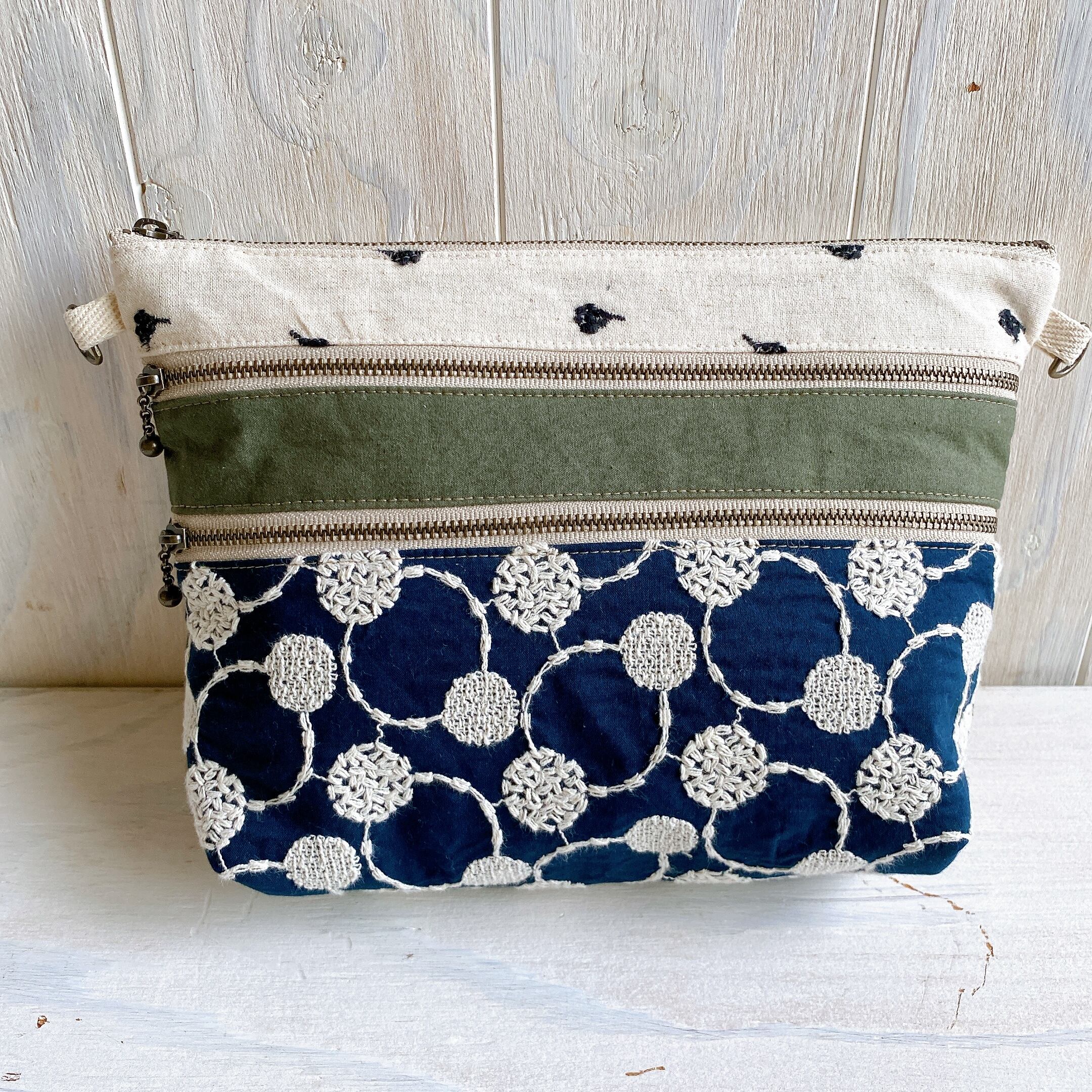 マチ付き3ファスナーポーチ・ポシェットにもなります(サークル刺繍)