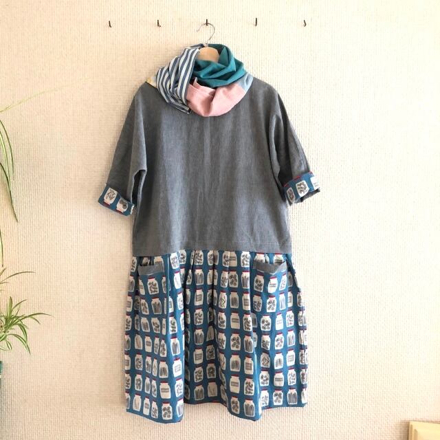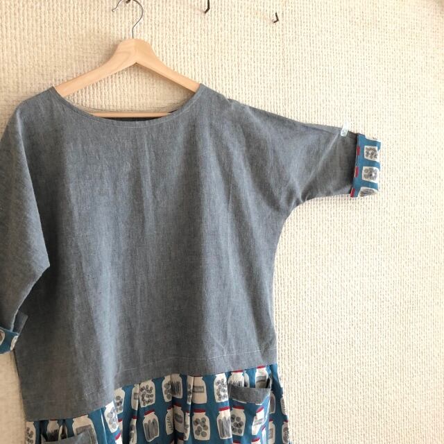 素材は、トップス部分はハーフリネン、スカート部分も綿麻です。