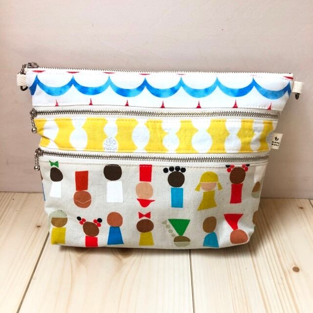 大ききめな3ファスナーポーチ*ポシェットにも(ゆびにんぎょう)