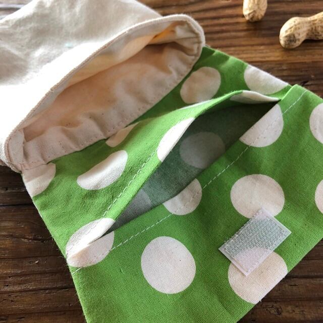 裏にはちいさいポケットを付けて絆創膏なども持ち歩けるようにしました。
