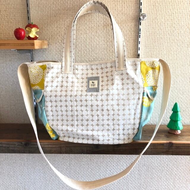 たっぷり収納の2wayマザーズバック(ミズイロ×あじさい)