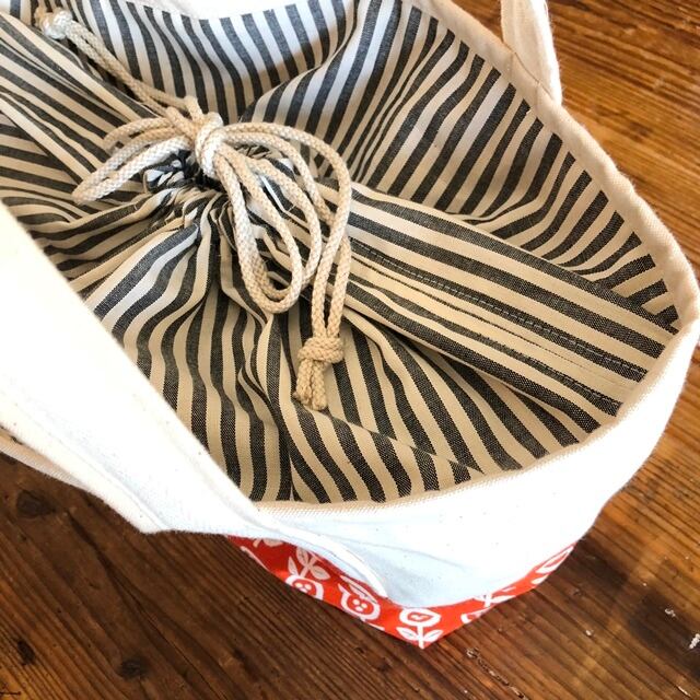 中身が飛び出さないように巾着をつけましたので安心してお使いいただけます。