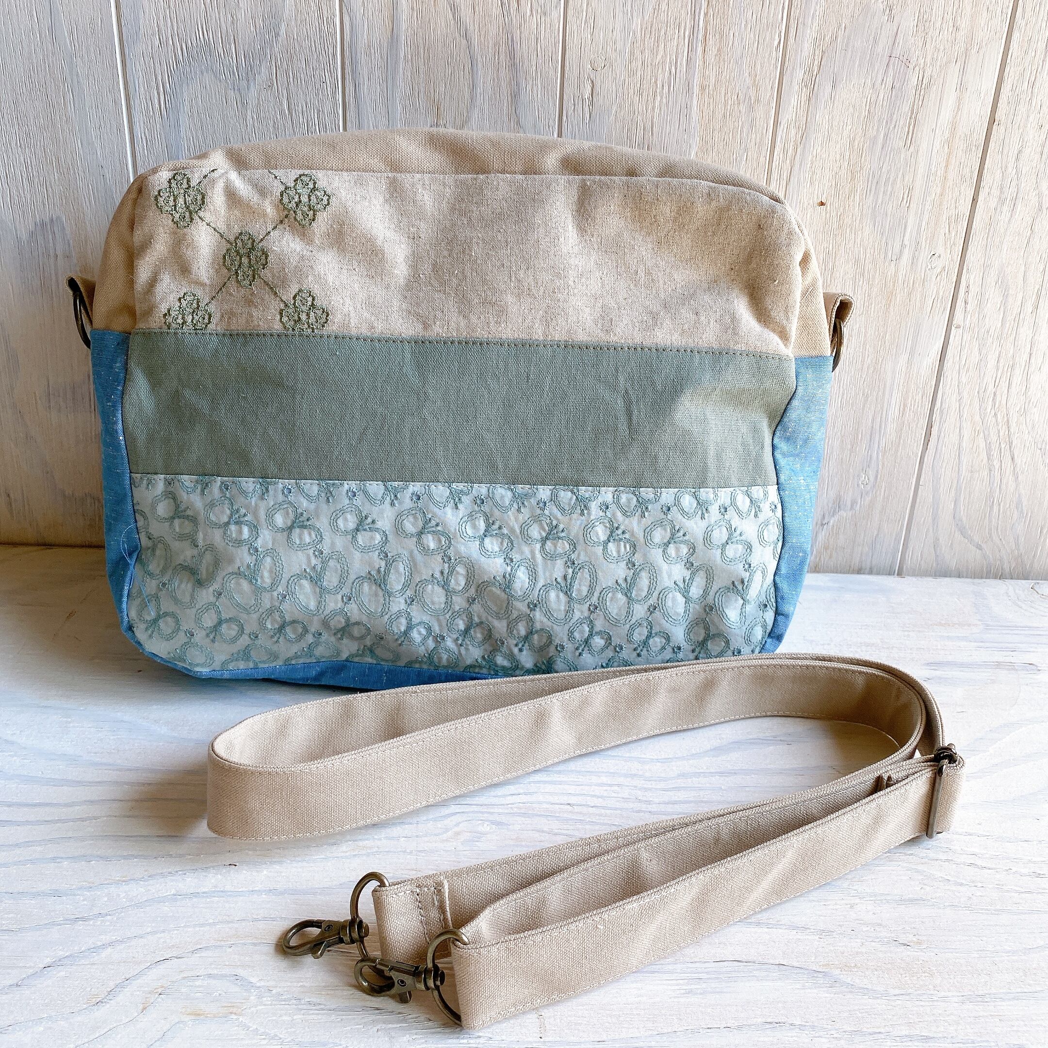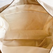 裏地は綿麻キャンバス、マチの部分はハンプの生地を使っていますのでハリがあります
