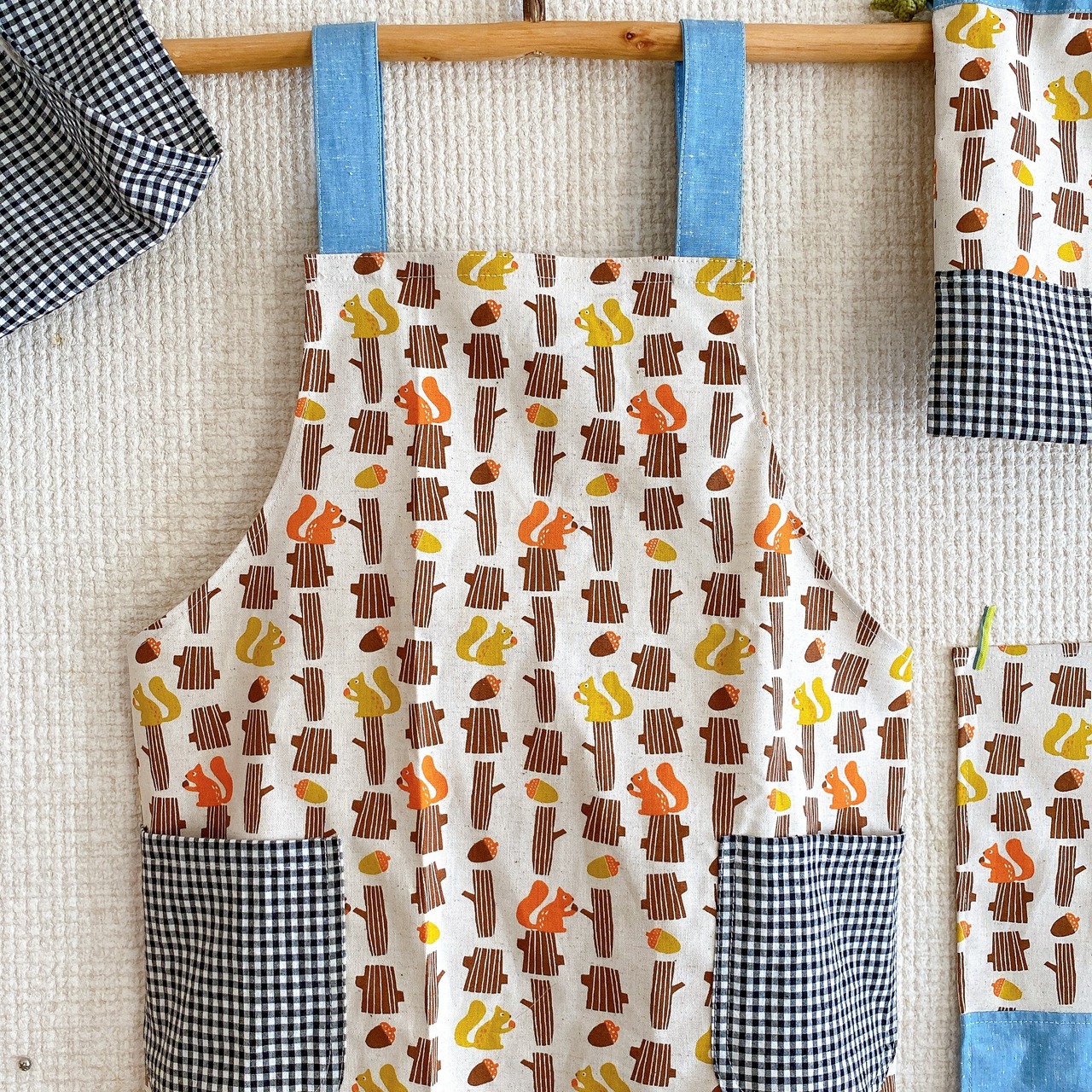 エプロン4点セット(サイズ150)リス・茶色