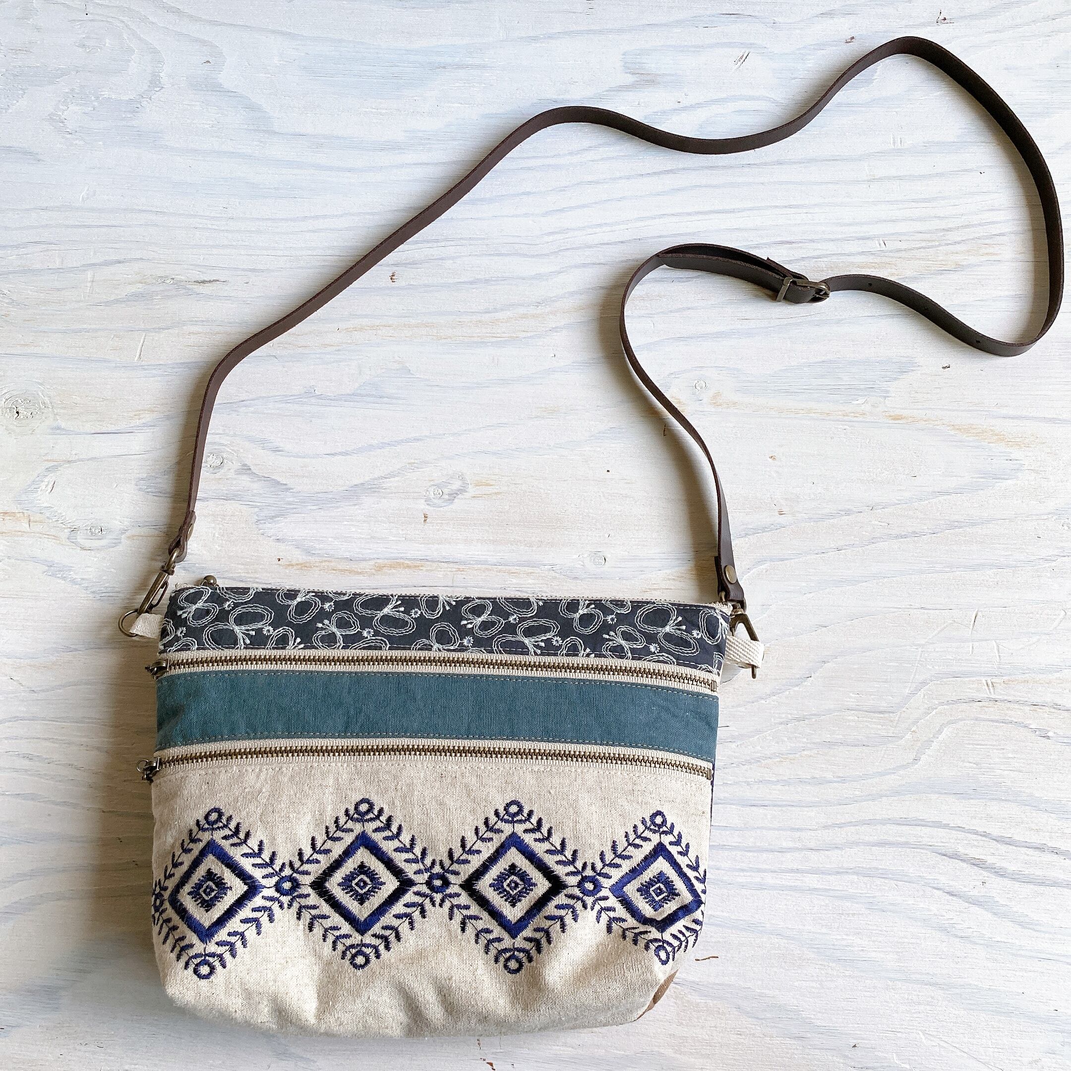 マチ付き3ファスナーポーチ・ポシェットにもなります(ひし形刺繍)