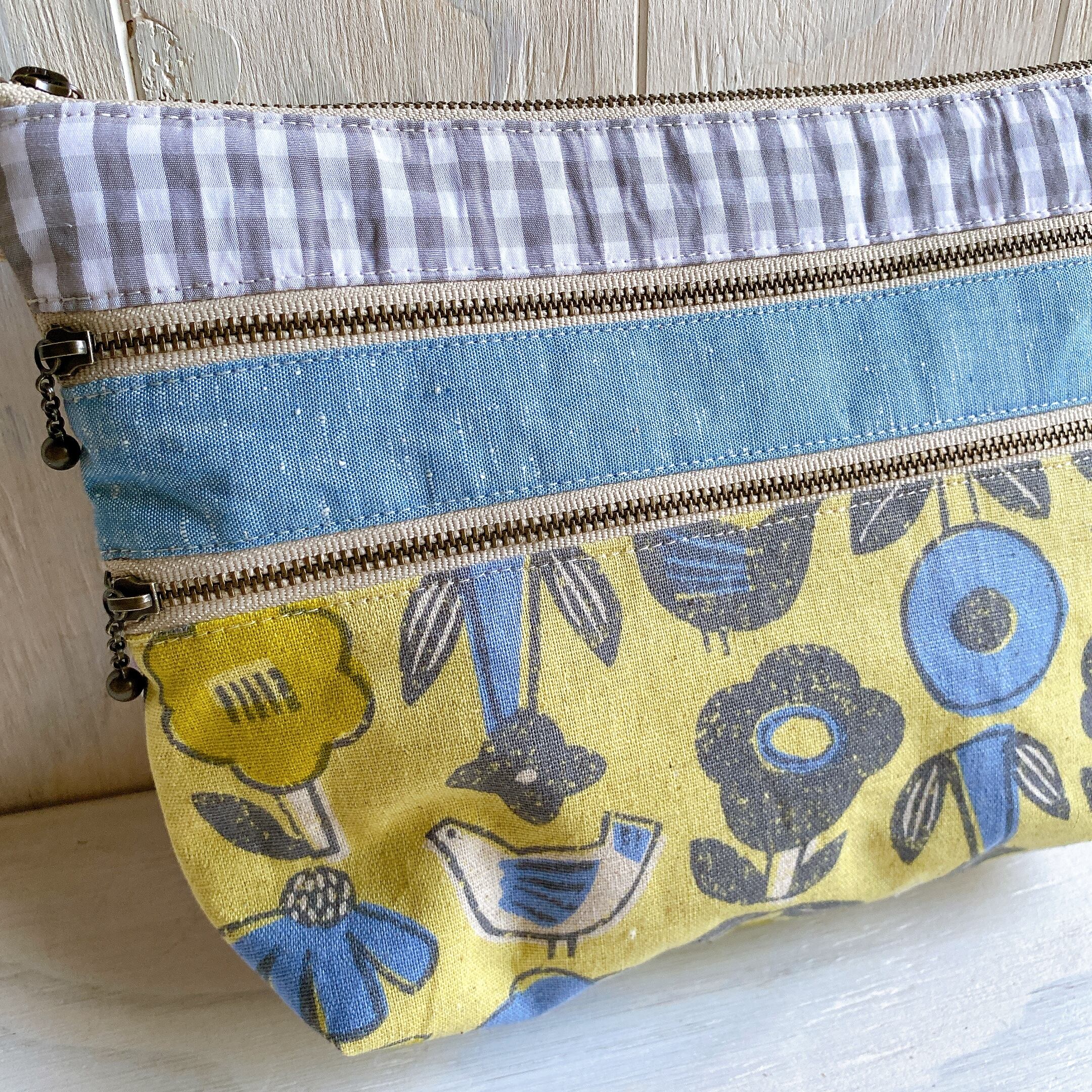 マチ付き3ファスナーポーチ・ポシェットにもなります(鳥と花)