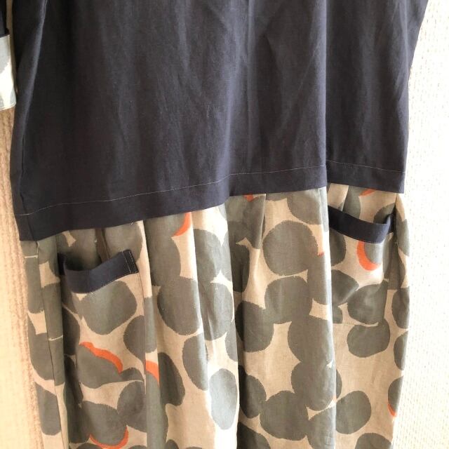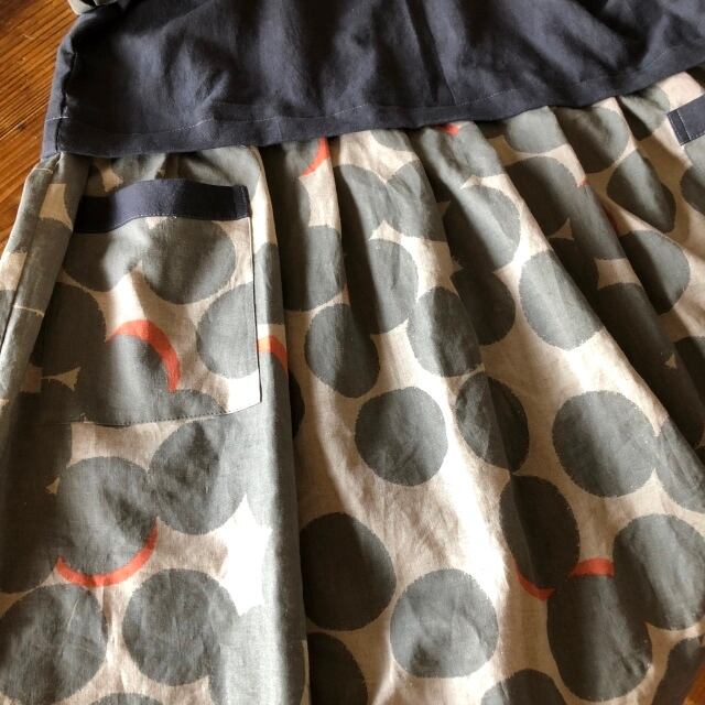 素材は、トップス部分はハーフリネン、スカート部分も綿麻です。