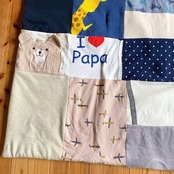 サイズアウトしたベビー服をブランケットにリメイクしました。