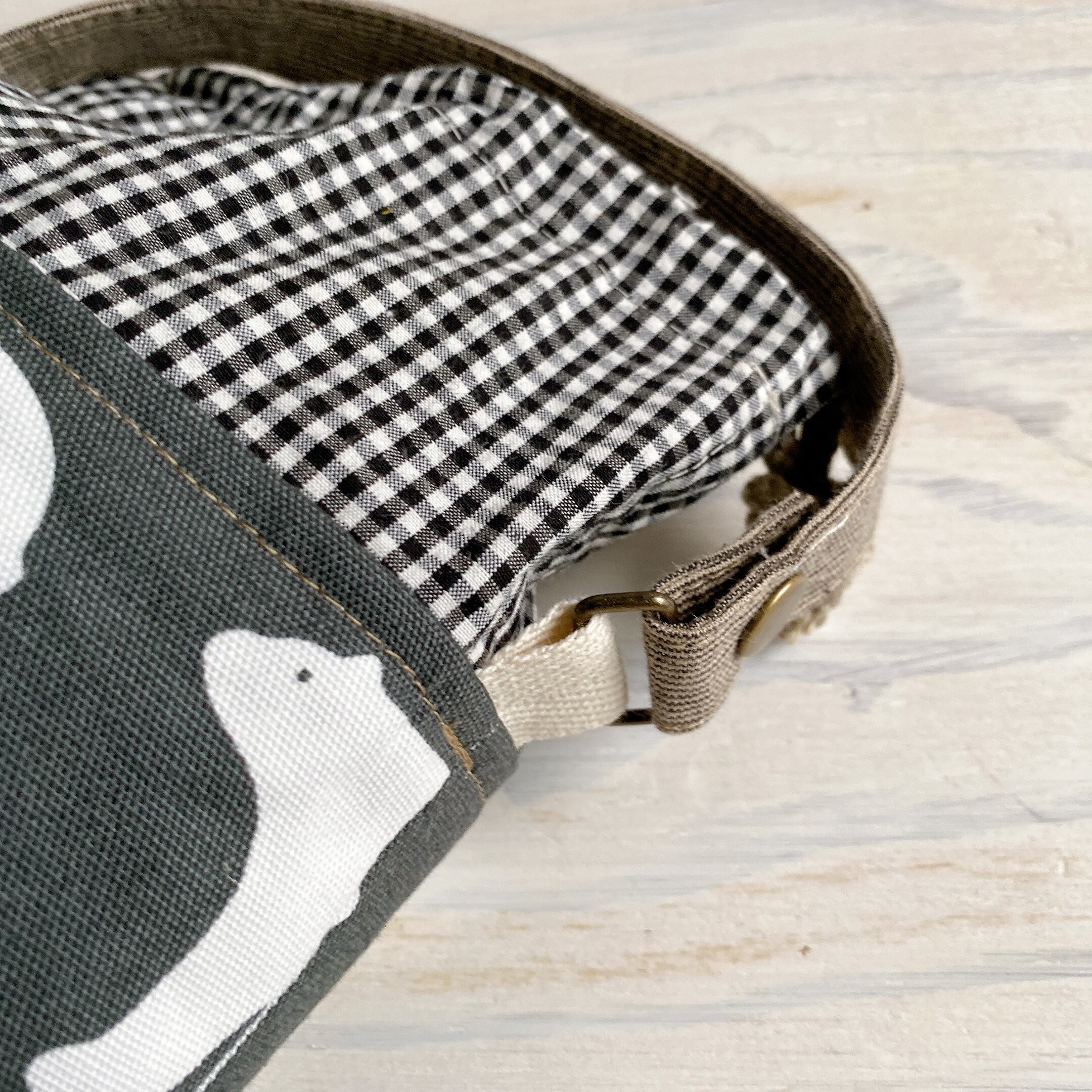 持ち手は片方取り外しのできる牛革のストラップを使用していますので