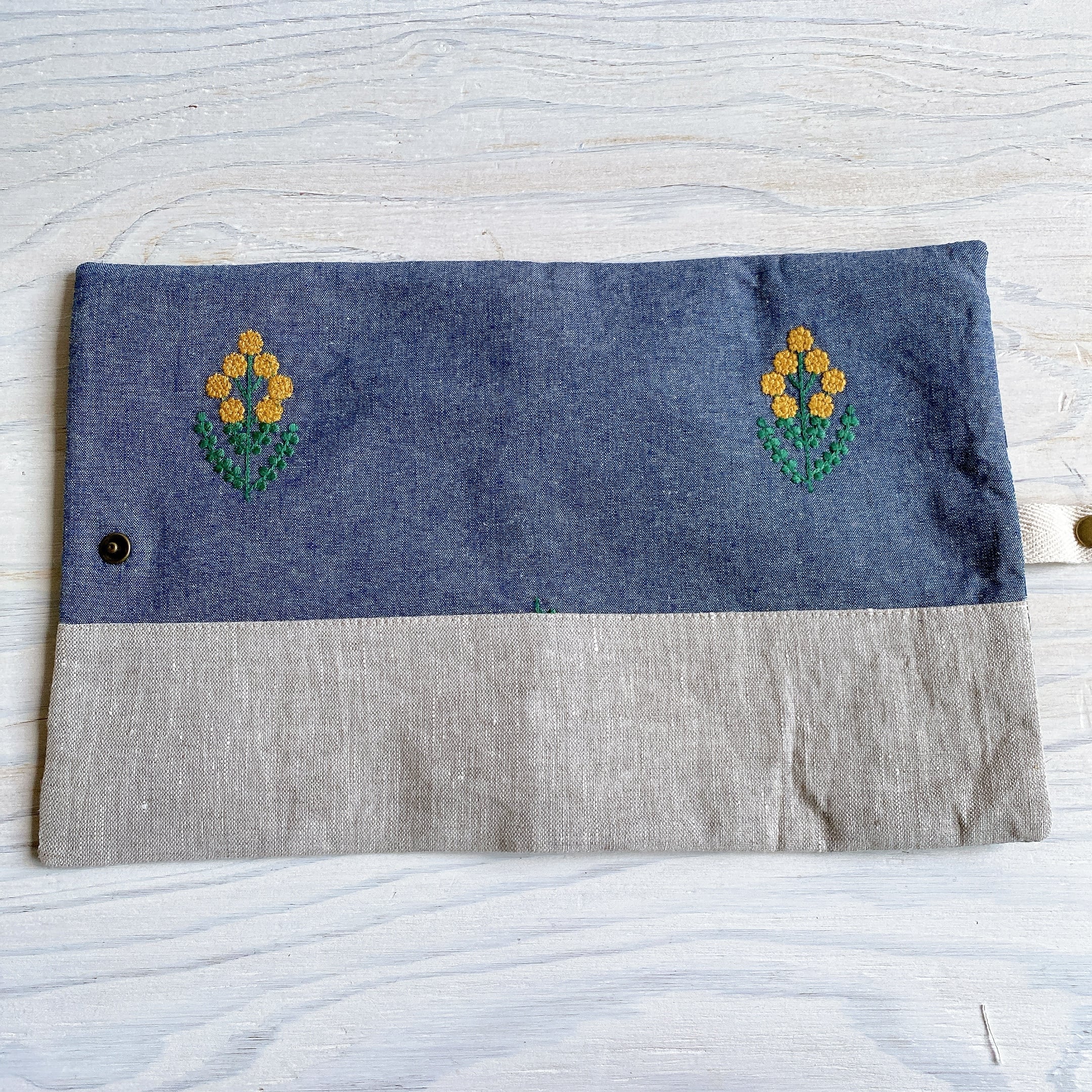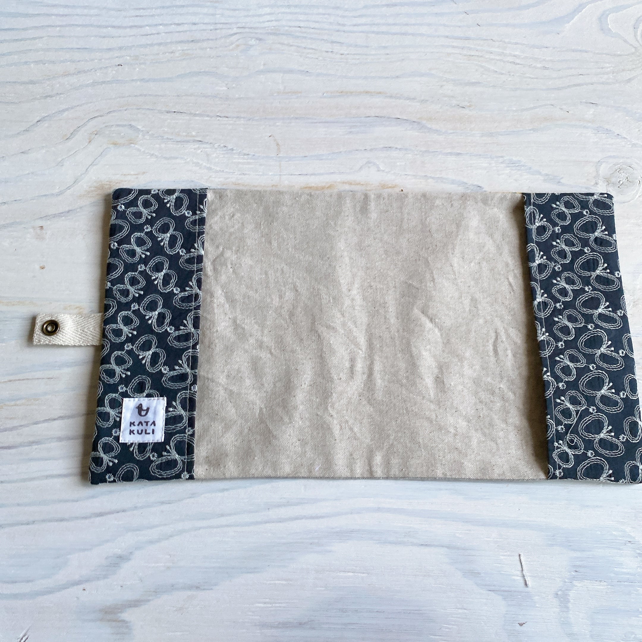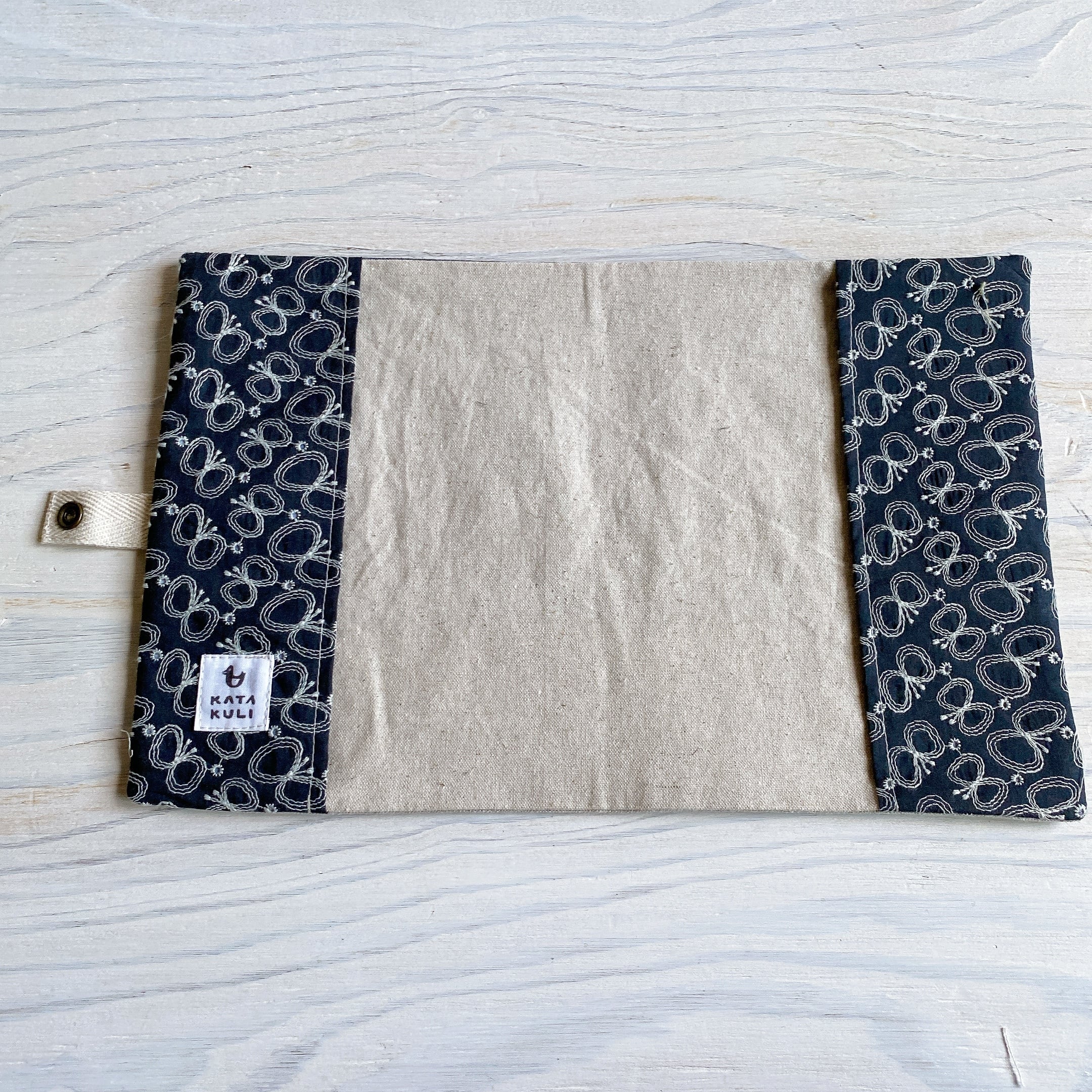 本がカバンの中で開かないようにスナップボタンを付けました。