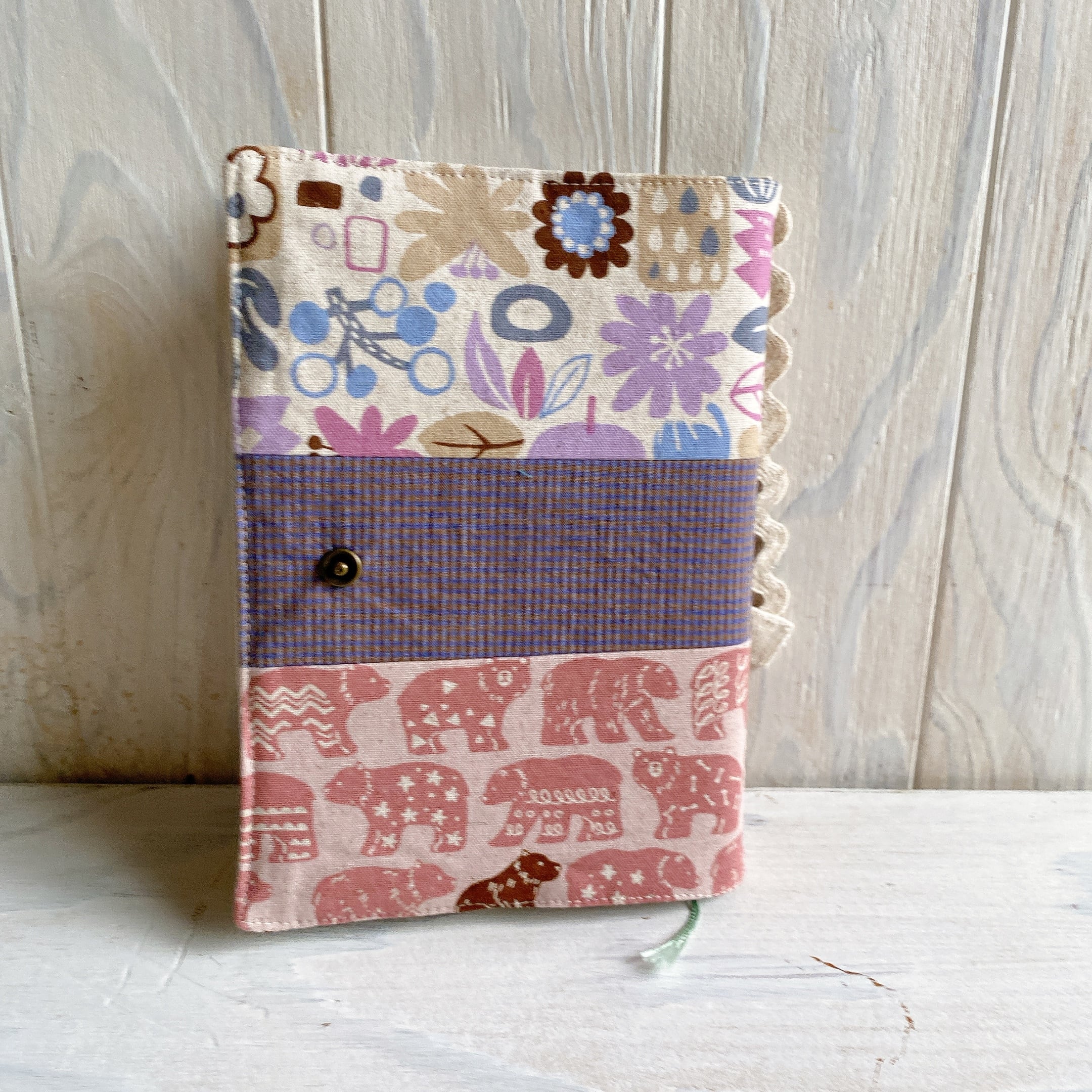 3種類の生地を組み合わせてブックカバーを作りました