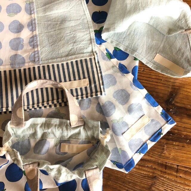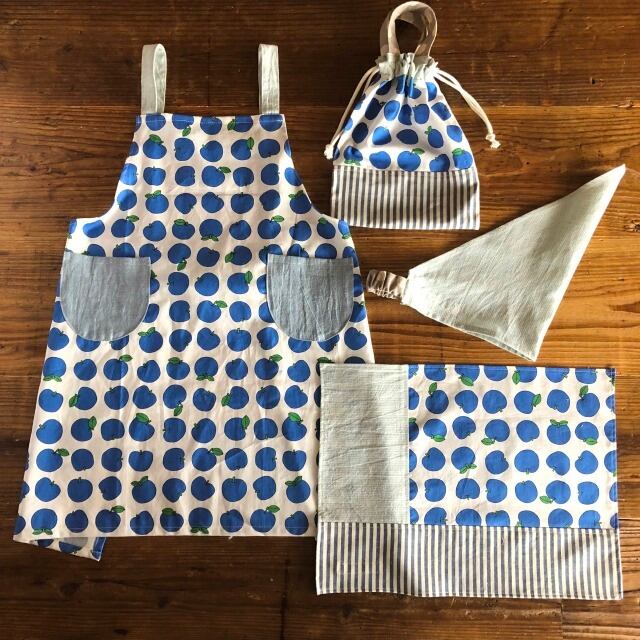 低学年サイズ♪エプロン4点セット(サイズ125)青りんご