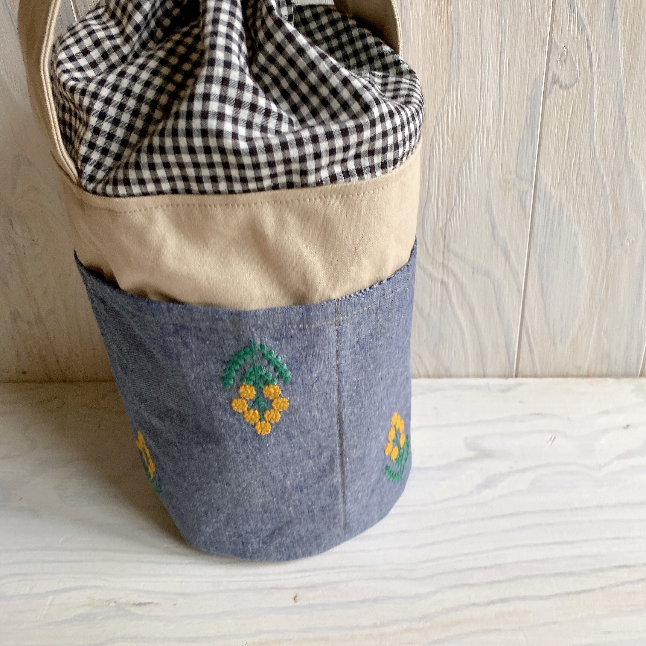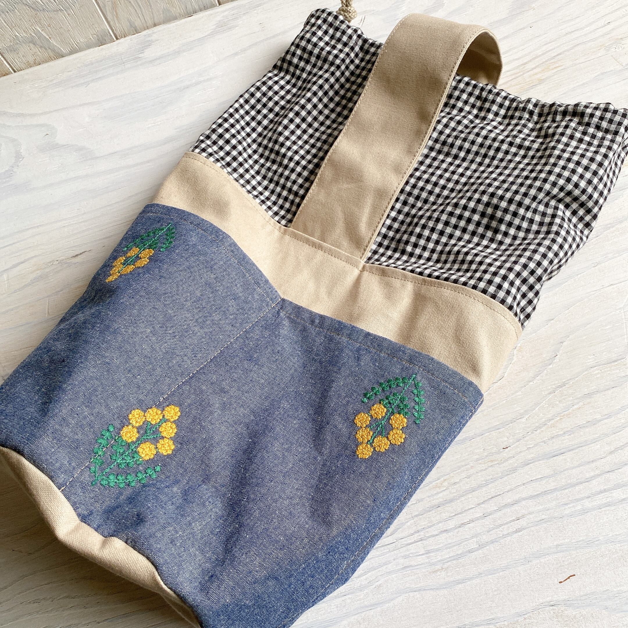 巾着付きのワンハンドルバック(ミモザ×ギンガム)