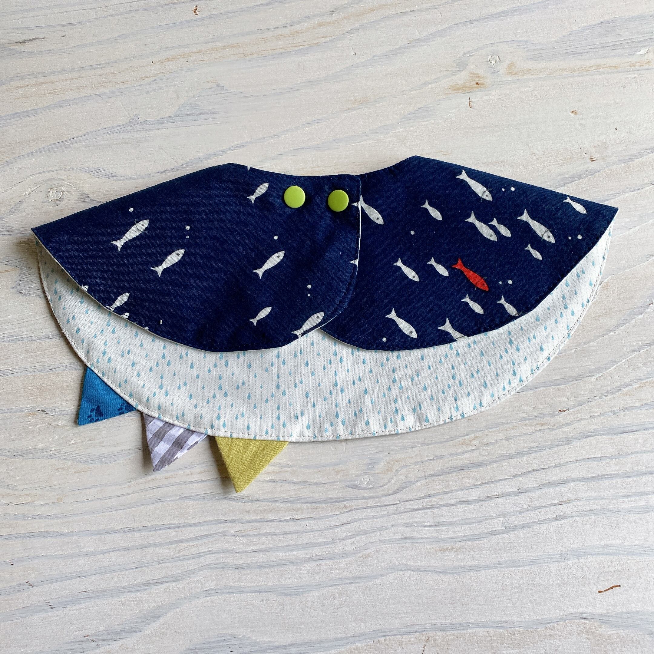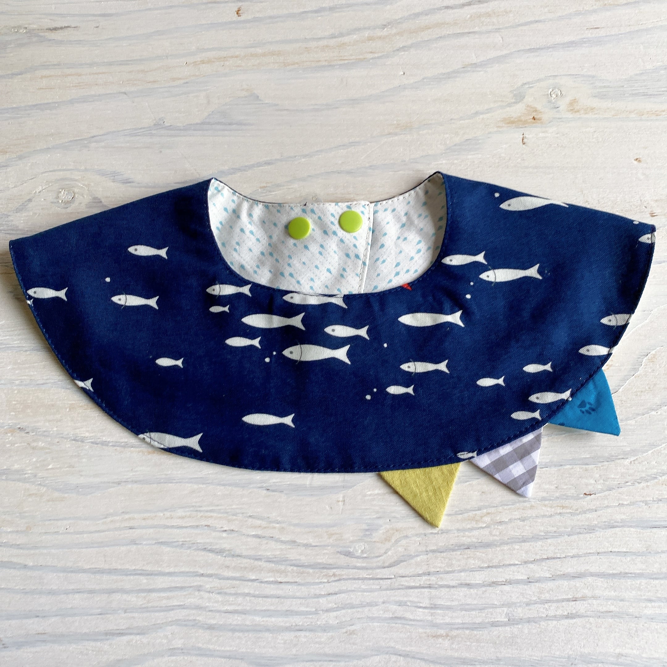 表と裏の間には綿の生地を挟んで3層構造になっていますのでよだれの多い子でも安心です