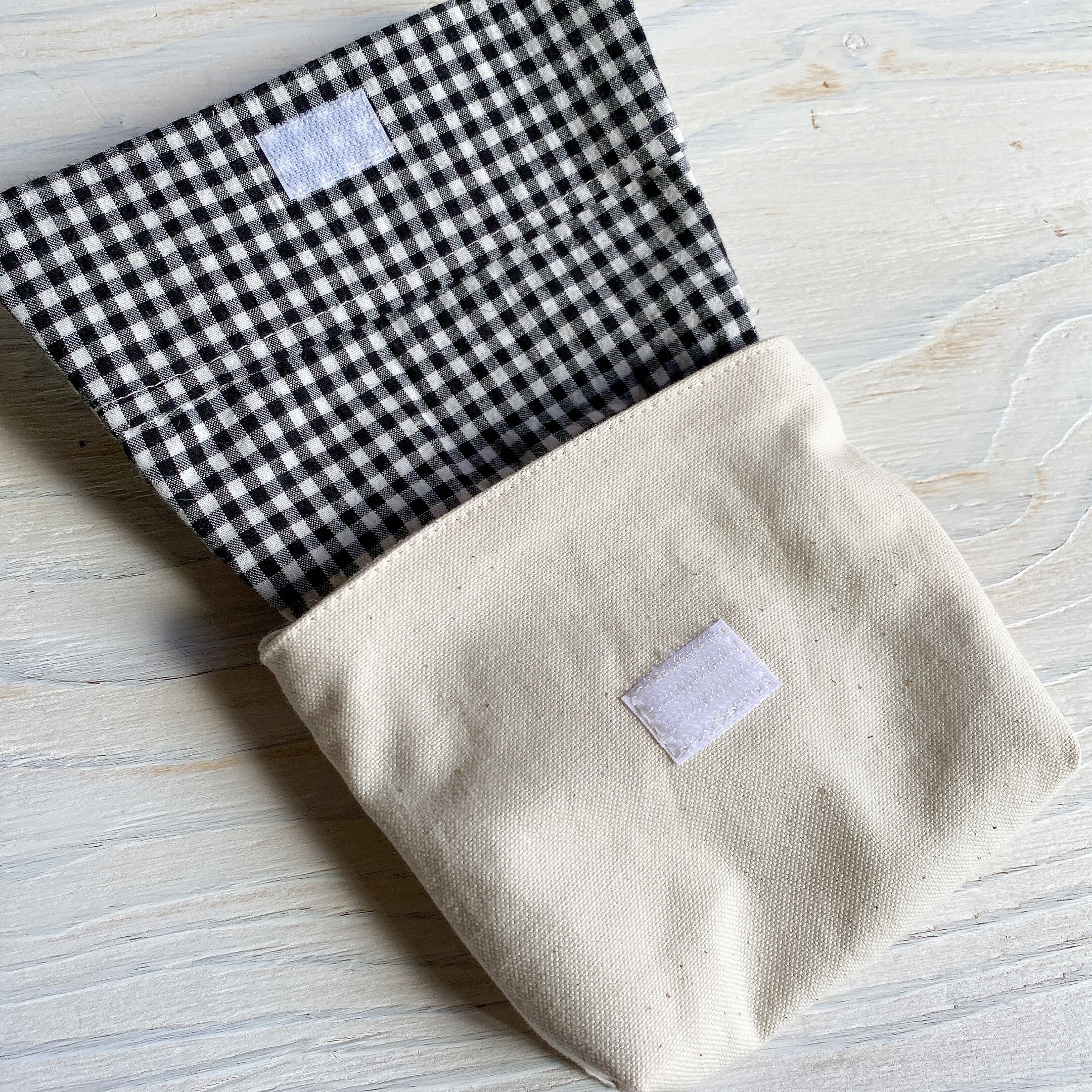 裏にはちいさいポケットを付けて絆創膏なども持ち歩けるようにしました。