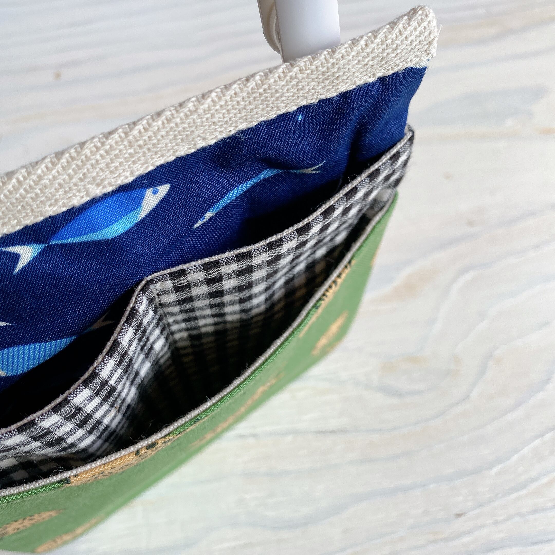 内側のポケットには真ん中にステッチを入れてお部屋分けしています