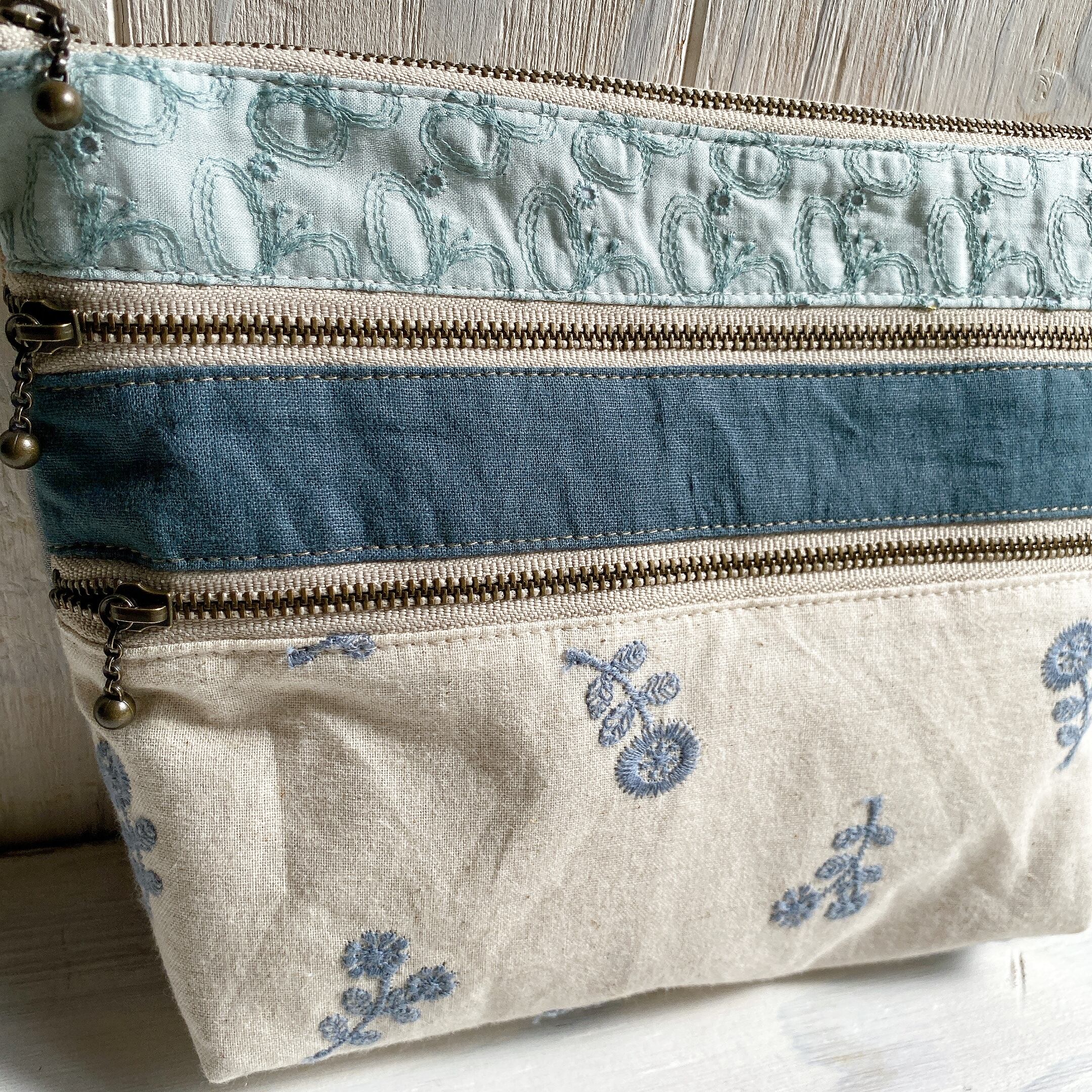 マチ付き3ファスナーポーチ・ポシェットにもなります(ブルーグレー)