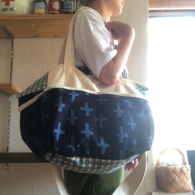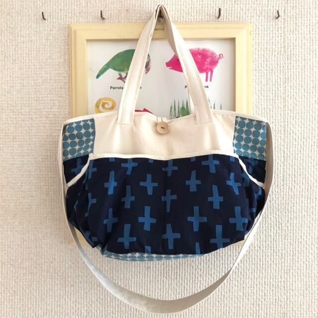 たっぷり収納の2wayマザーズバック(ネイビー・クロス)