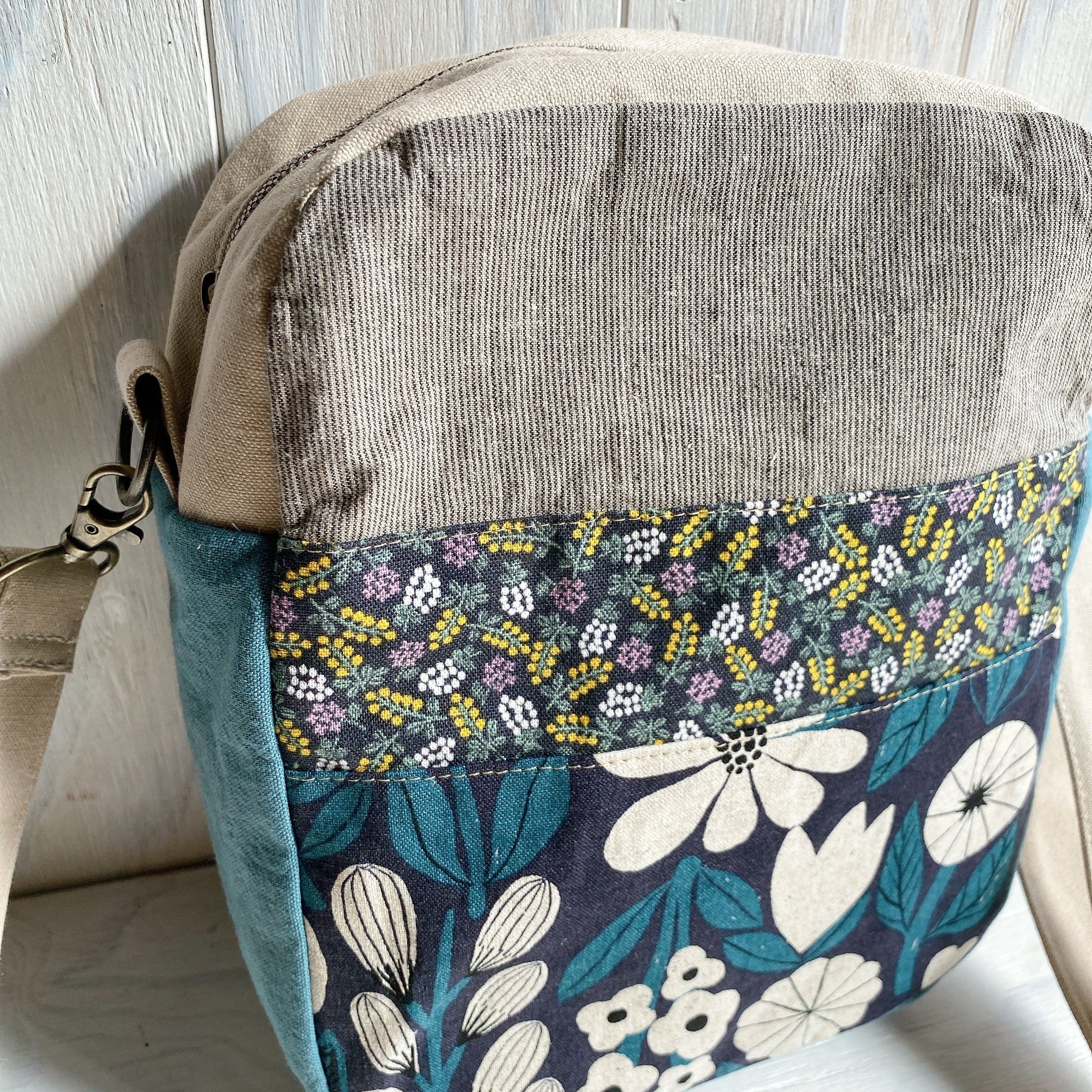 両面さまざまな相性の良い生地を組み合わせて斜め掛けできるおとなのポシェットを作りました。