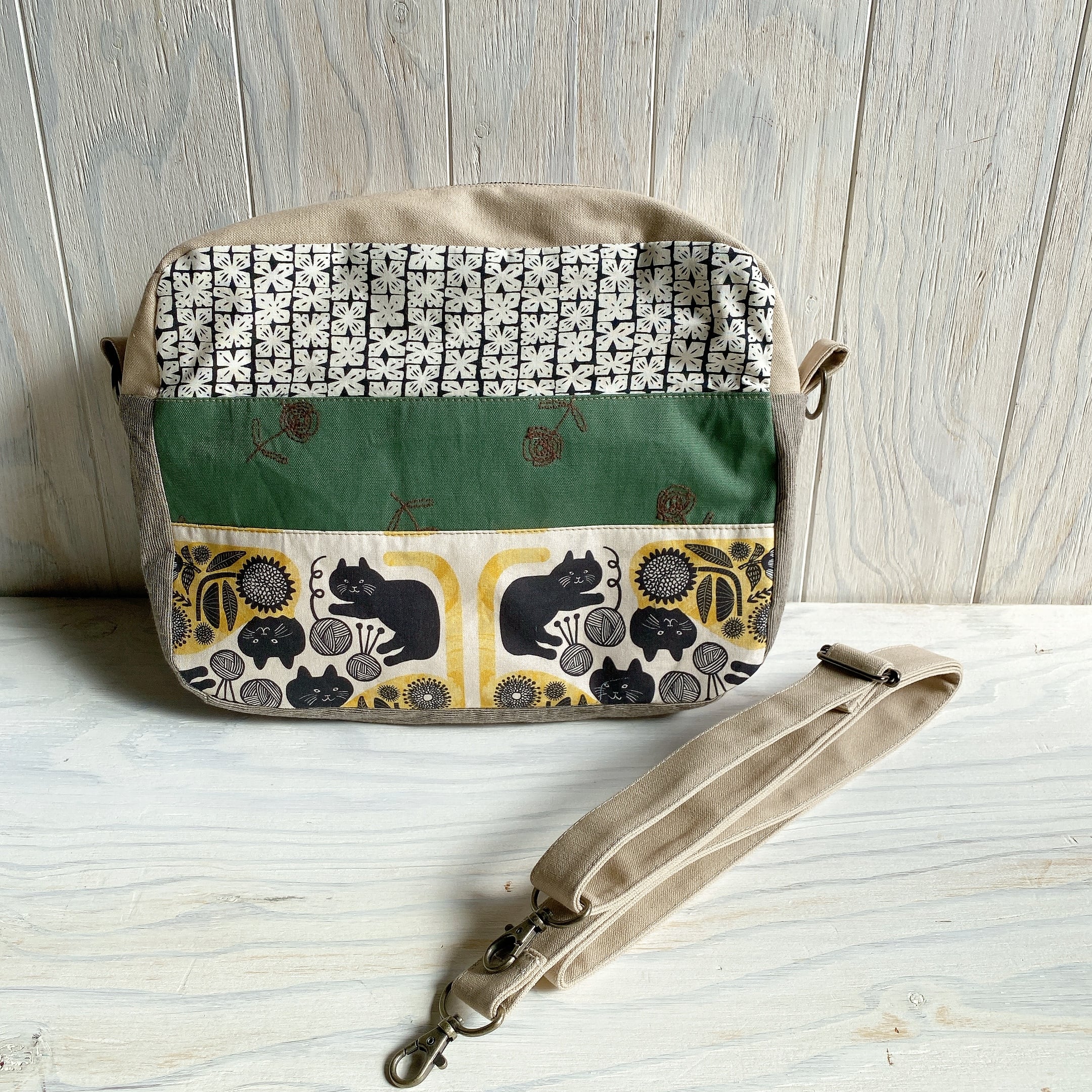 裏地は綿麻キャンバス、マチの部分はハンプの生地を使っていますのでハリがあります