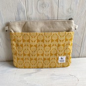 本体はハンプを使っており、柄生地にはすべて接着芯をはって製作しています。
