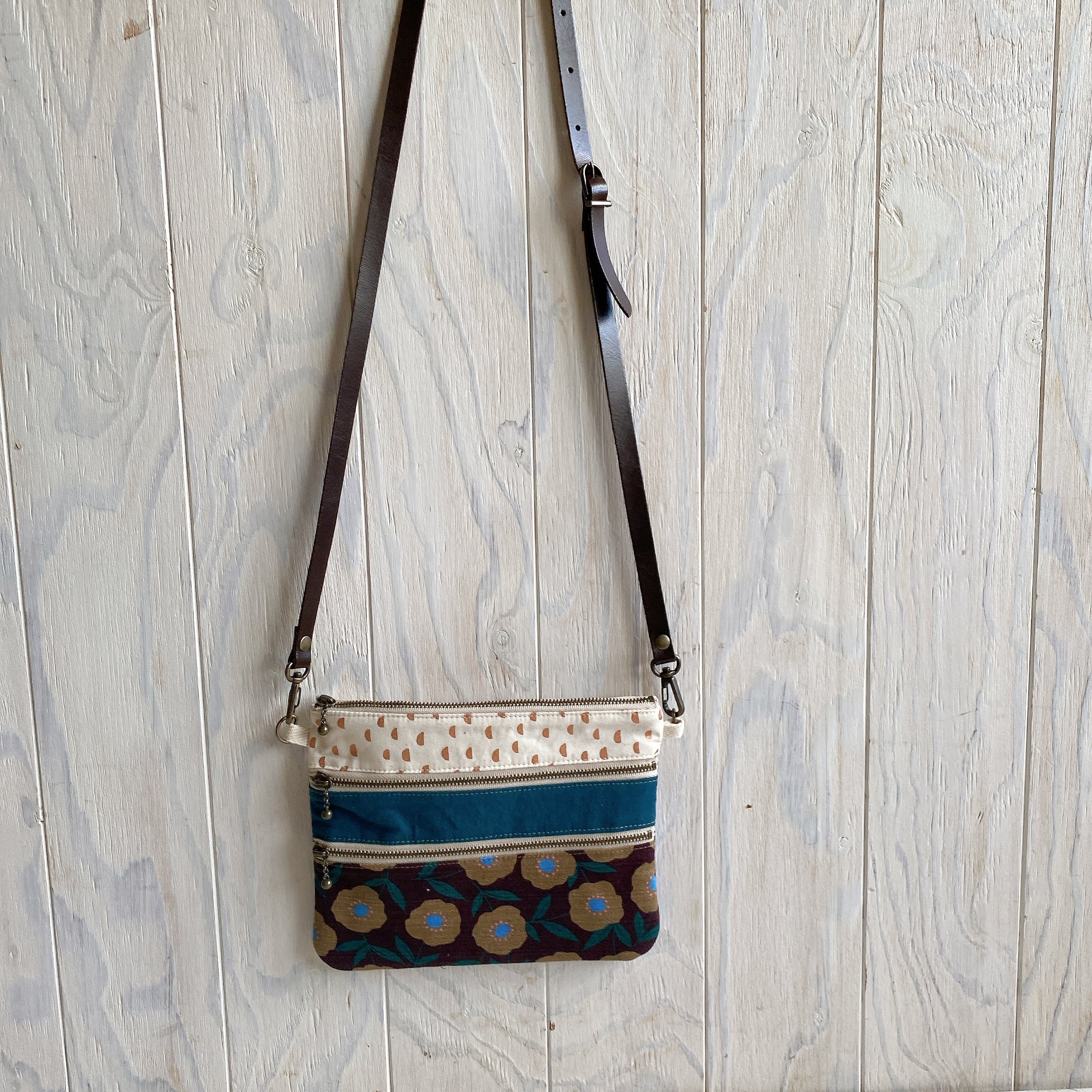 3ファスナーフラットポーチ・サコッシュにもなります(茶色おはな)