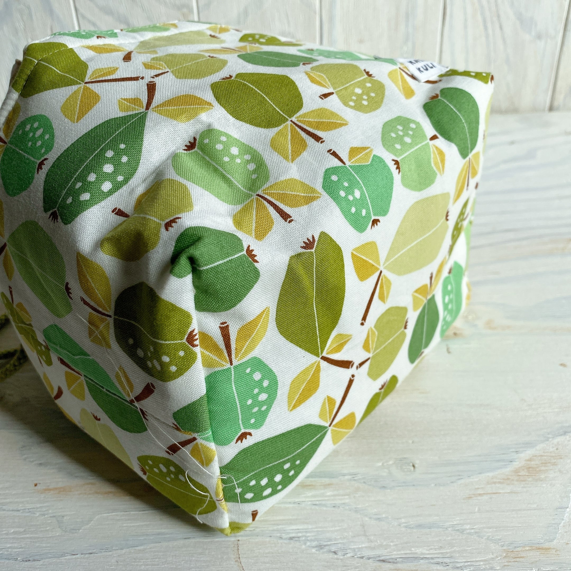 3種類の生地を組み合わせて、巾着付きのバックを作りました。